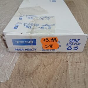 Tesa Assa Abloy Cerradura de seguridad monopunto R200B de 4 bulones de cierre y picaporte, sin cilindro, entrada de 50mm, escudo E700L, acabado hierro latonado