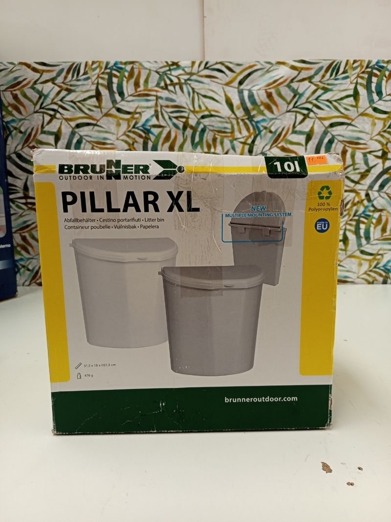 Cesto Brunner Pillar XL de 10 litros, color blanco. Está en buen estado, aunque presenta algunas pequeñas marcas de uso.