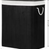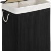 SONGMICS Cesta de lavandería con tapa, 2 compartimentos, de bambú, con bolsa extraíble lavable, bolsa extraíble, asas de algodón, 100 l, para colada, dormitorio, negro, LCB64BK