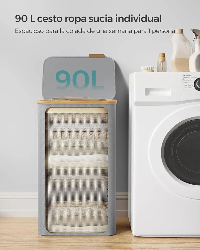 spacioso] Este cesto para ropa sucia de 90 L, que mide 42 x 32 x 70,5 cm, ofrece espacio suficiente para la colada de una semana de una sola persona, lo que simplifica tu rutina de lavado