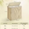 SONGMICS Cesto de Ropa Sucia de 3 Compartimentos, Cesta de Colada de Bambú, 170 L, Bolsa de Ropa Extraíble y Lavable a Máquina, con Tapa, Asas, para Lavadero, Dormitorio, Salón, Natural LCB069Y01