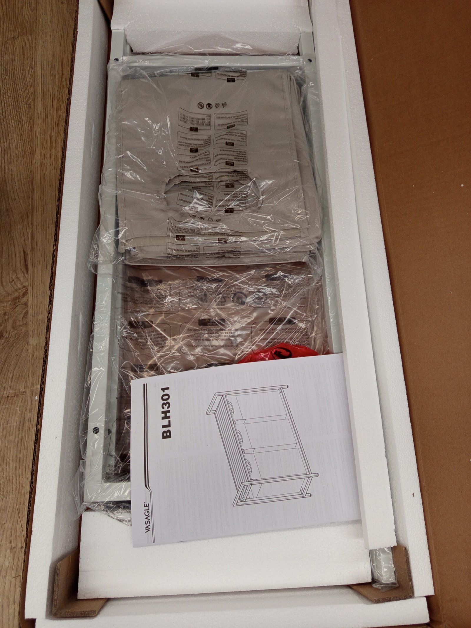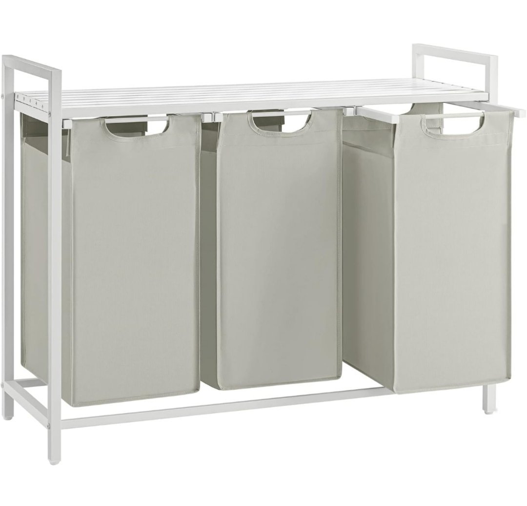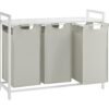 VASAGLE Cesto para Ropa Sucia, Cesta Colada, 3 Bolsas de Tela Oxford Extraíble y Desmontable, Estante, Marco Metálico, 3 x 40 L, 92,5 x 33 x 72 cm, Blanco Crema y Blanco Mate BLH301W01
