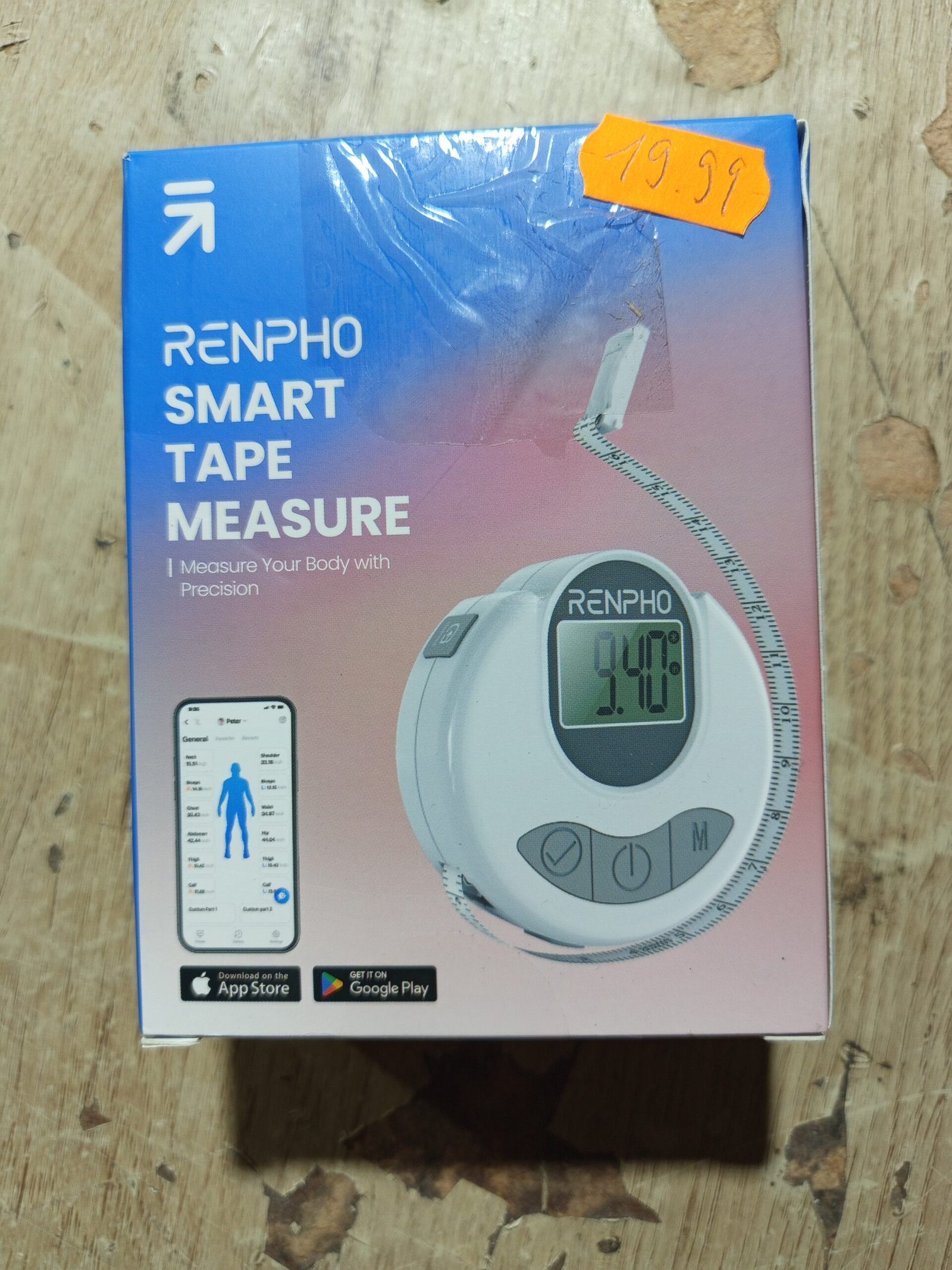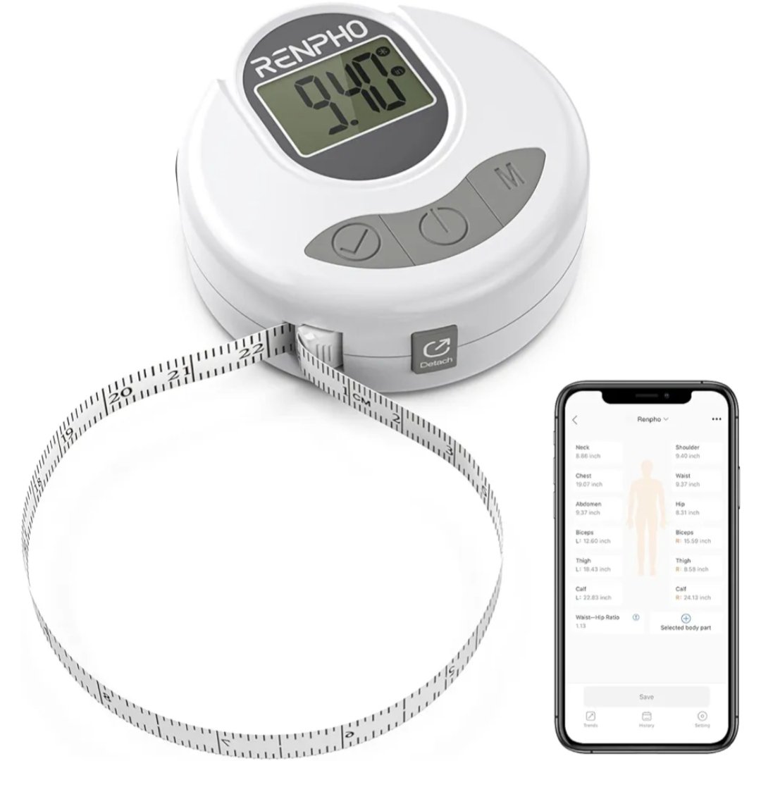 Cinta Métrica Corporal Cinta Métrica Digital e Inteligente RENPHO con Bluetooth para Medir el Cuerpo, Pérdida de Peso, Fitness, Retráctil, Mide la Circunferencia de la Parte del Cuerpo