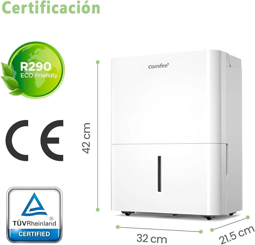 ★ DESHUMIDIFICACIÓN EFICIENTE: Adecuado para habitaciones de hasta aproximadamente 180 m³ (80 m²). Los deshumidificadores Comfee evitan problemas de condensación, formación de moho u olores a humedad. Especialmente útiles en cuartos de baño, sótanos, lavanderías, cocinas y habitaciones mal ventiladas.