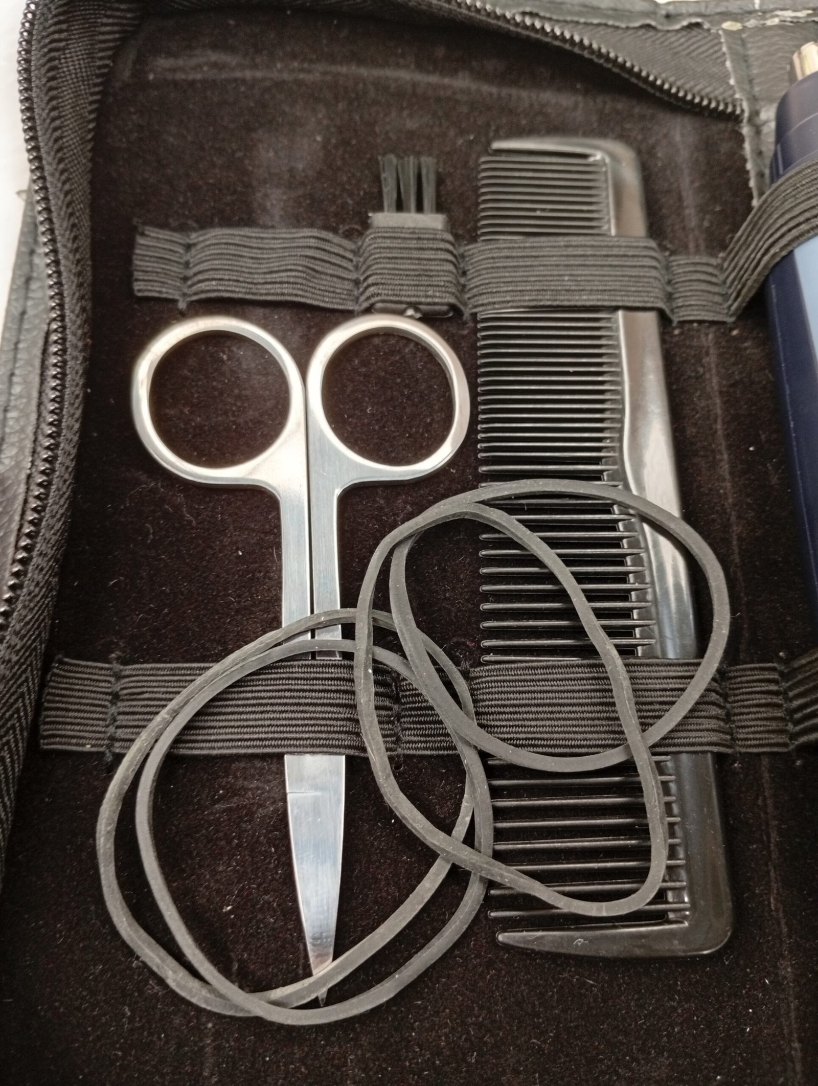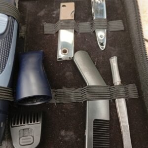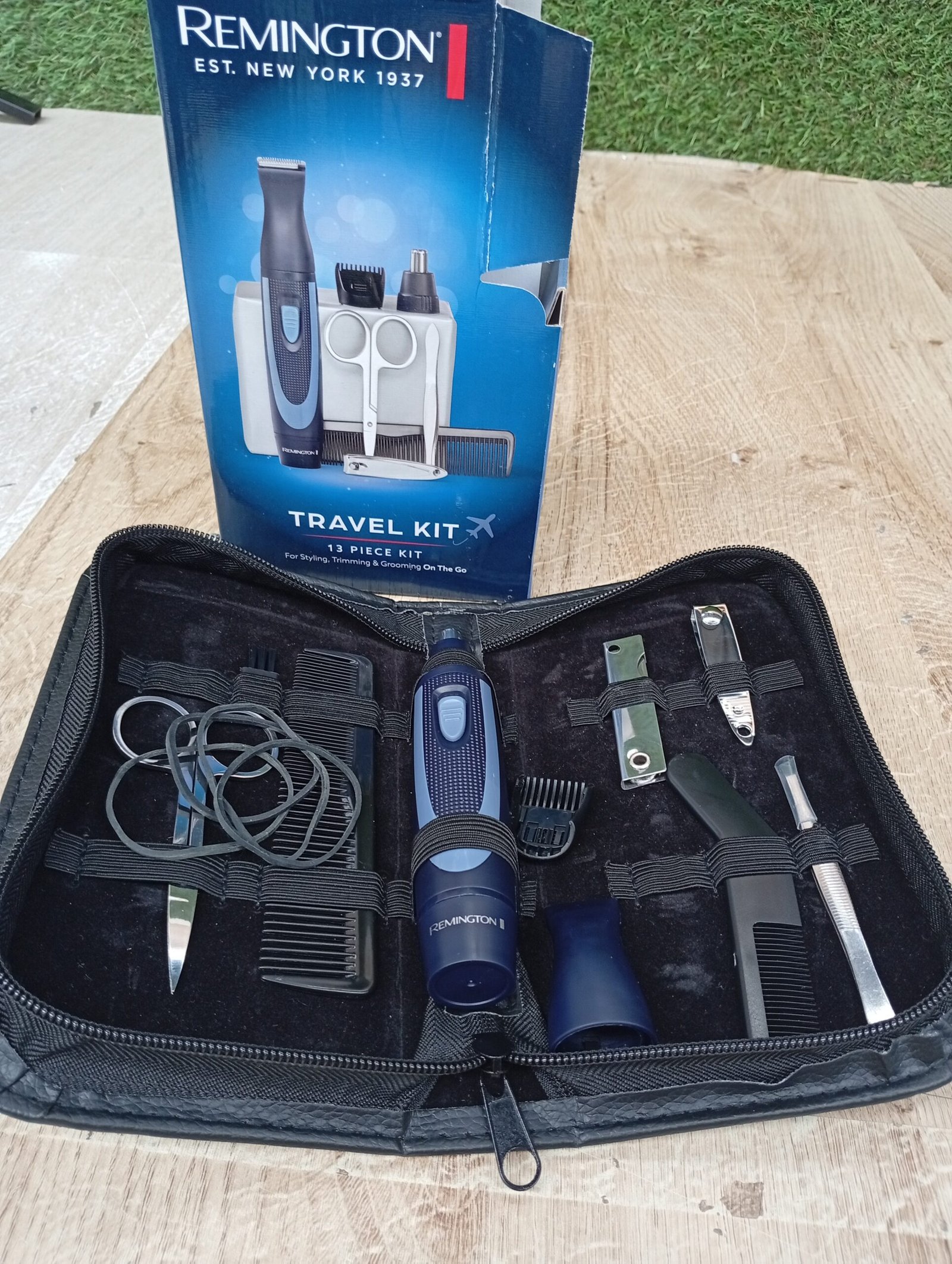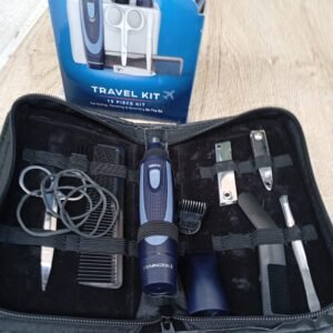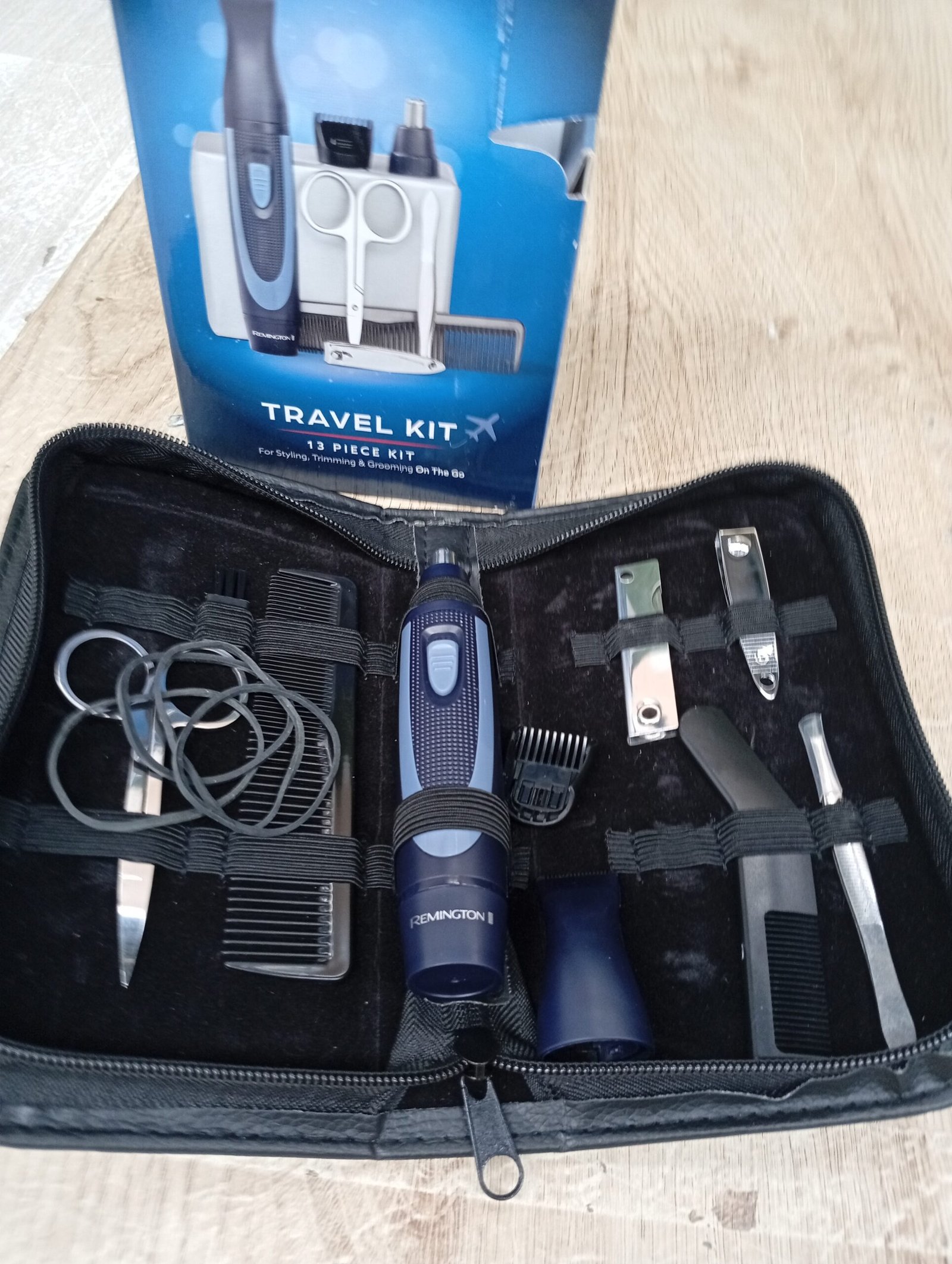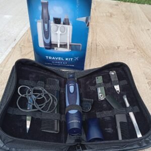 Este kit de viaje de 13 componentes incluye accesorios de cuidado masculino, entre ellos un recortador facial rotativo, un cortador de precisión con peine especial para barbas muy cortas (1-5 mm) y otros accesorios para mantener un aspecto impecable sobre la marcha.
