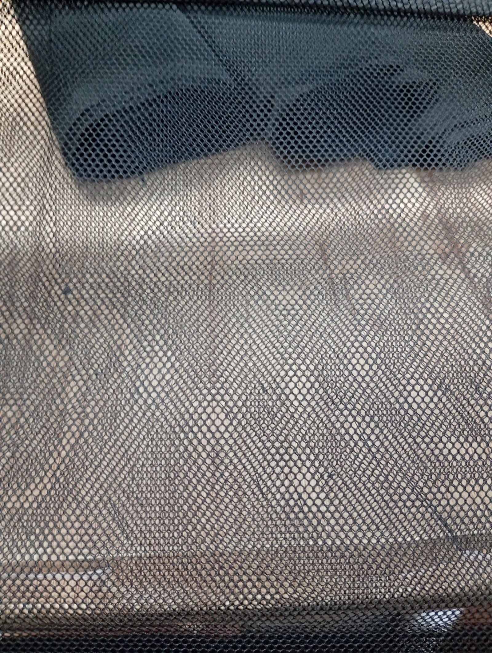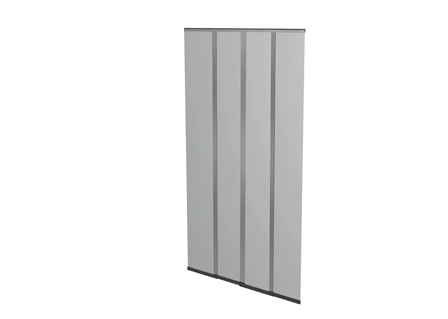 La cortina de láminas consta de cuatro tiras de poliéster superpuestas.