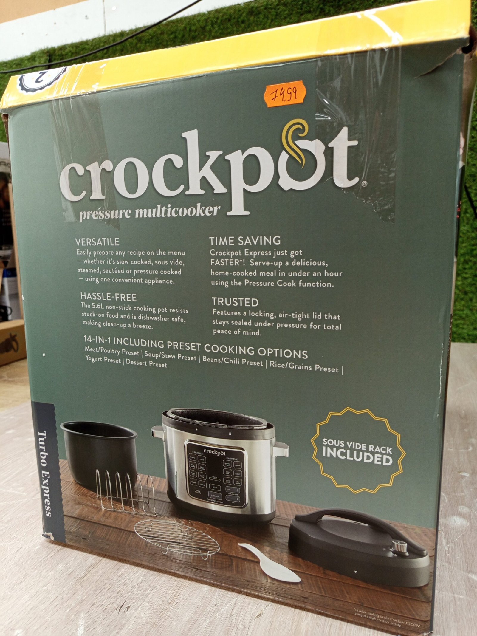 Crockpot Turbo Express Multicooker a Presión | 5,6 L (Más de 6 Personas) | Opciones de Cocción 14 en 1 | Olla de Cocción Lenta, Vaporera, Olla a Presión y Más | CSC062X