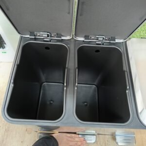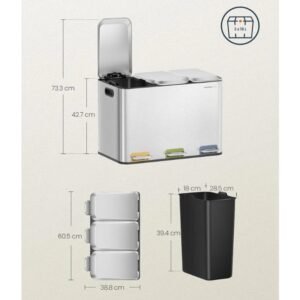 Este cubo de basura de cocina cuenta con tres cubos interiores de 15 litros, lo que facilita la separación de residuos reciclables, como botellas y latas de plástico, residuos no inflamables, como productos plásticos, y residuos inflamables, como restos …