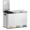 Cubo de basura SONGMICS, 3 filas, 3 x 15 L, horizontal, con tapa, gran capacidad, acero inoxidable, con pedal, compatible con botellas y latas de PET, elegante, con bolsa oculta, diseño hermético, apto para cocinas, salones y oficinas, plateado, LTB740E45