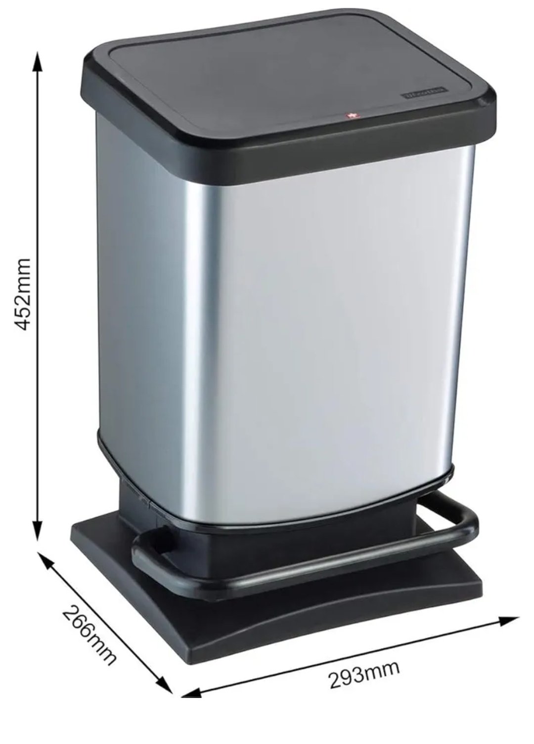 Rotho Paso Pedaalemmer 20L Zilver Metallic, Cubo de metal con pedal en color gris plateado metálico