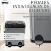 Sus medidas son: 48 x 32 x 40 cm. Ha sido elaborado con acero inoxidable, que destaca por su dureza, resistencia a la tracción y larga vida útil. Cuenta con acabado plateado. Cada cubo posee una capacidad de 15 l. Incluye una base de plástico