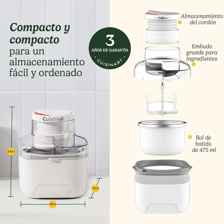 Cuisinart Heladera Solo Scoops, Máquina para hacer helado gelato sorbetes y yogur helado, casero en 25min, sorbetes, Compacta, ocupa poco espacio, Tazón para bat, Bol de congelación instantánea 475ml