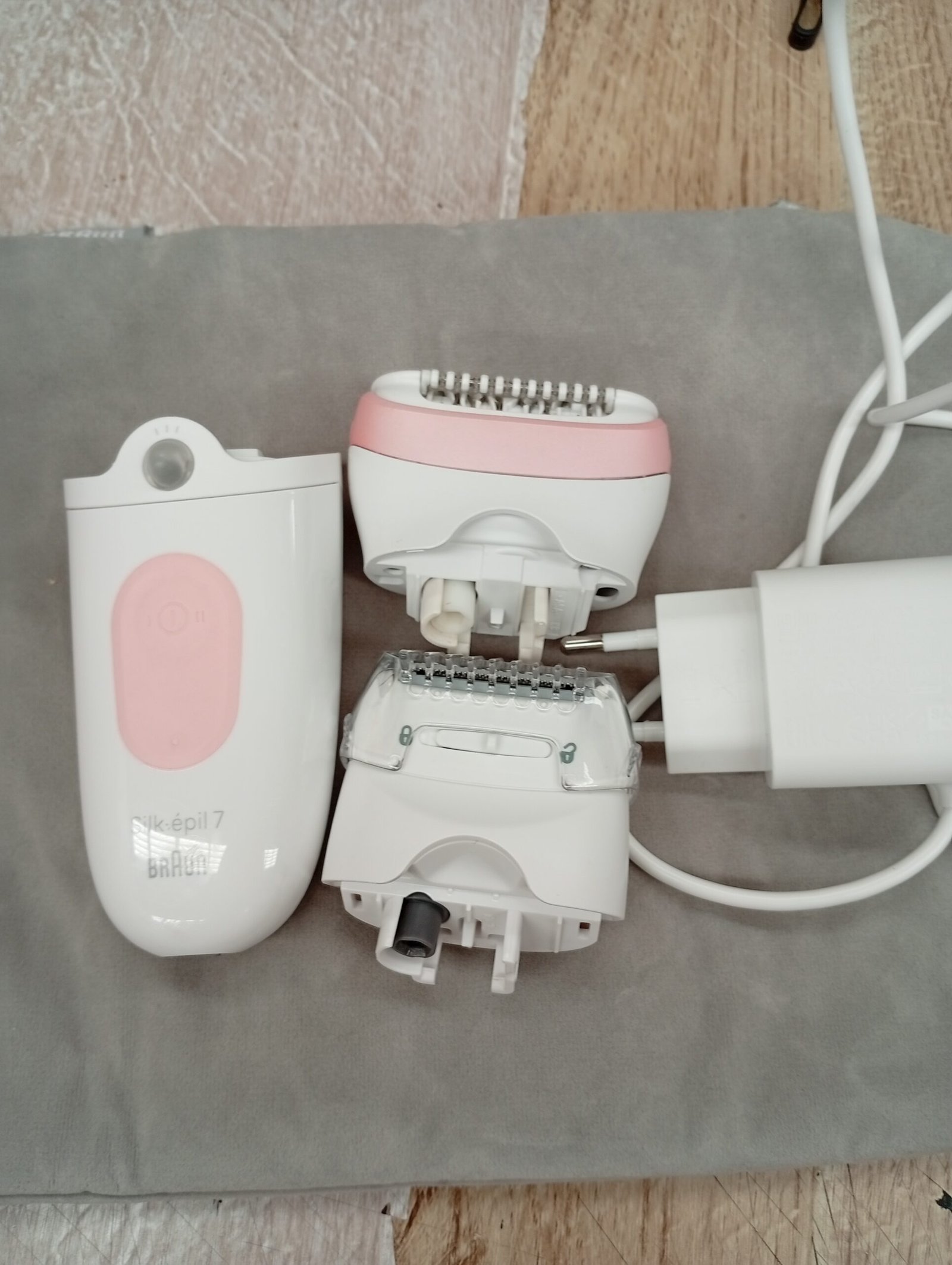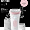 Braun Silk-épil 7, Depiladora Eléctrica Mujer Para Una Eliminación Del Vello Fácil, Depilación En Seco Y En Mojado, Con Cabezal De Rasuradora, Piel Suave Duradera, 7-030, Blanco/Flamenco
