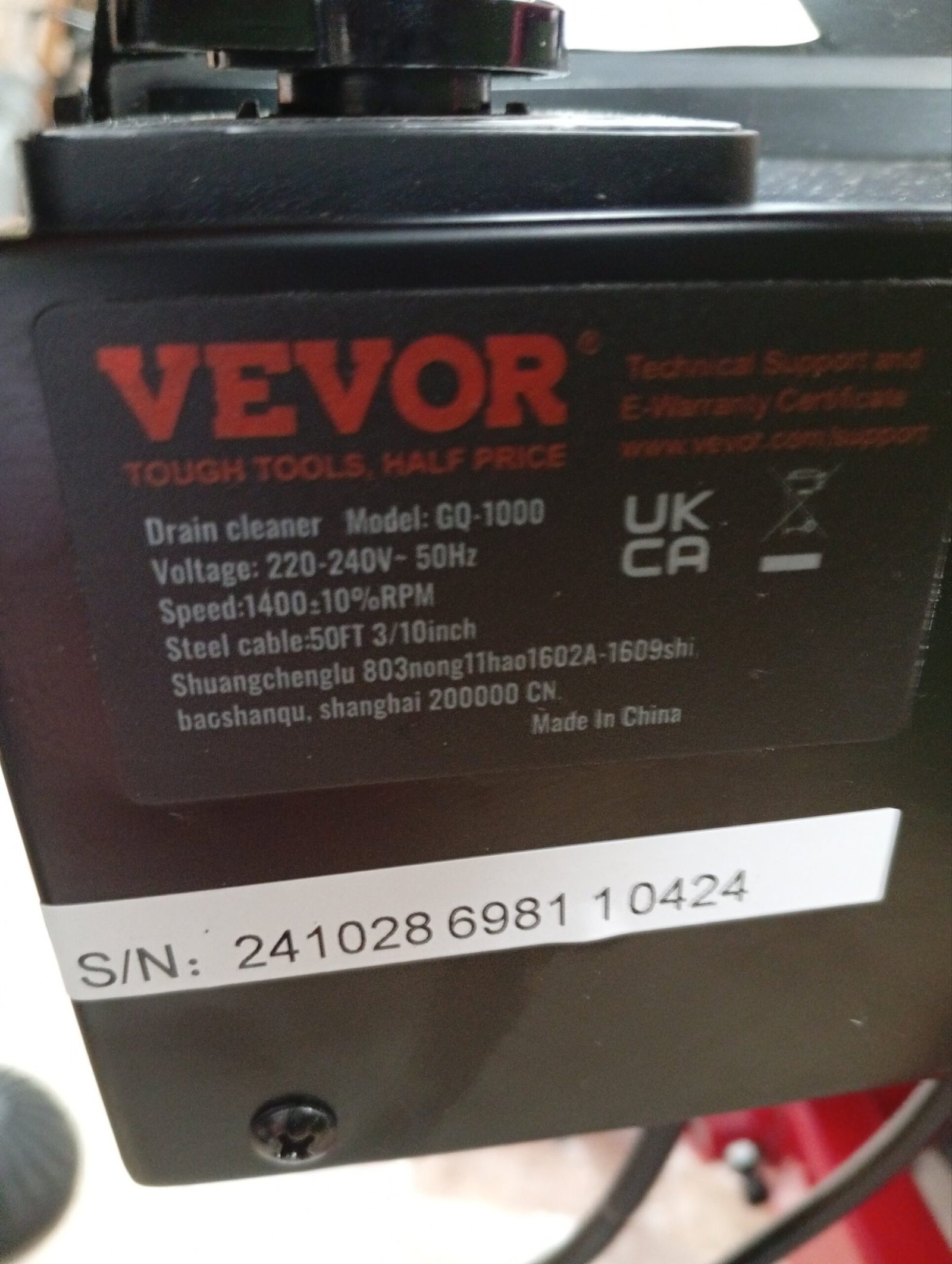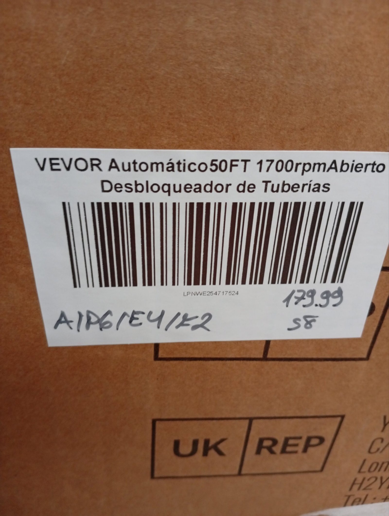 VEVOR Manual50FT 1700rpm Abierto Desbloqueador de Tuberías, 50FT 3/8IN 1700rpm