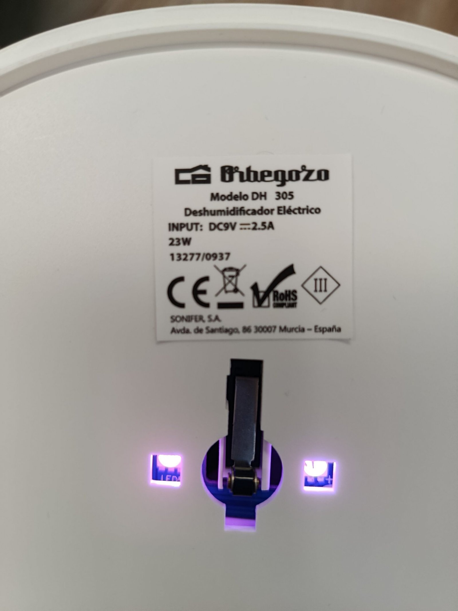 Orbegozo DH 305 – Deshumidificador, Tamaño compacto, silencioso, luz decorativa,sin refrigerante, Capacidad 1 L, 23 W