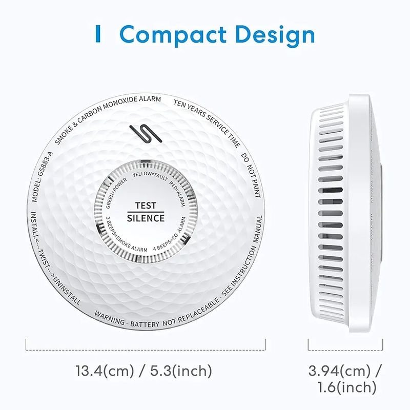 Meross, Detector de Humo y monóxido de Carbono, Combinado con batería de 10 años, Potente Sirena, verificación automática y botón de Prueba, certificada según EN14604