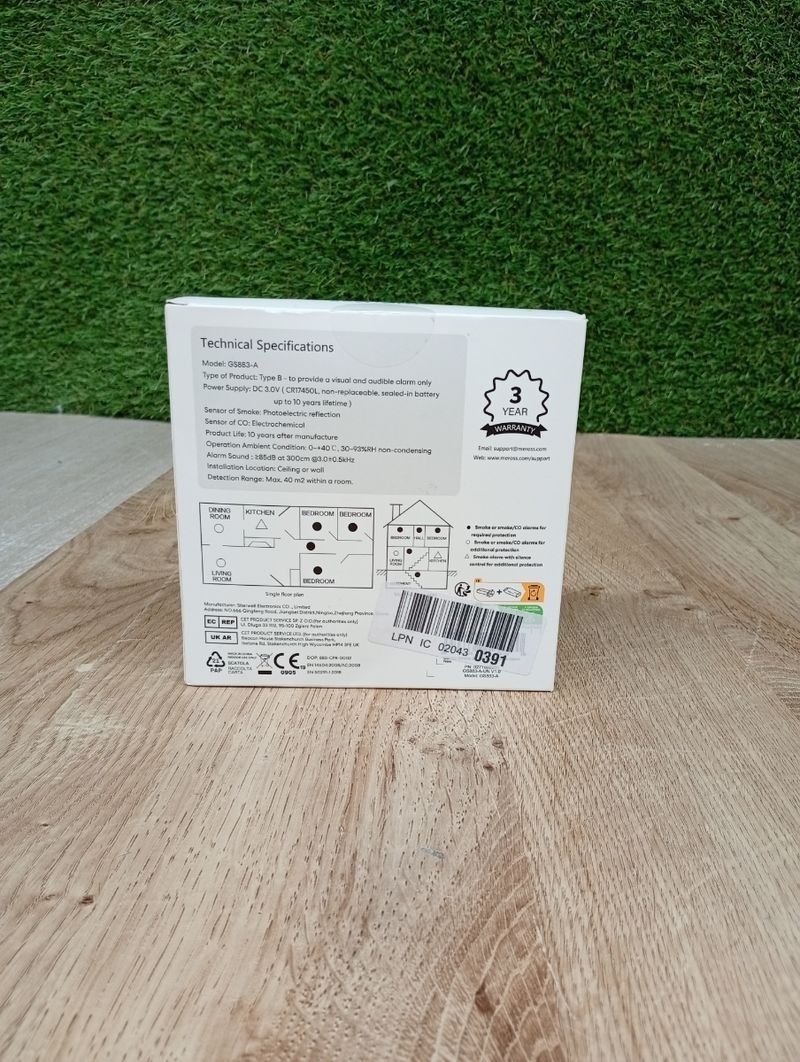 Este detector de humo y monóxido de carbono contiene 1 pila CR17450 de 3V incorporada que puede durar 10 años y no se puede extraer, lo que evita manipulaciones no deseadas y garantiza que su alarma esté siempre encendida.