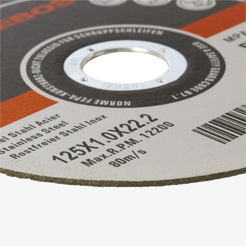 Nuestros discos de corte cumplen la norma de seguridad EN 12413 (Norma Europea 12413). Esto ha sido probado y confirmado por el Materialprüfungsamt (MPA) Hannover. Con un grosor de 1,2 mm, es extrafino y, sin embargo, muy resistente.