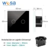 WESA – Doble conmutado Táctil de cristal Negro empotrable, Caja de cristal con pantalla táctil, con material de montaje y con indicador LED, FCM-05-B