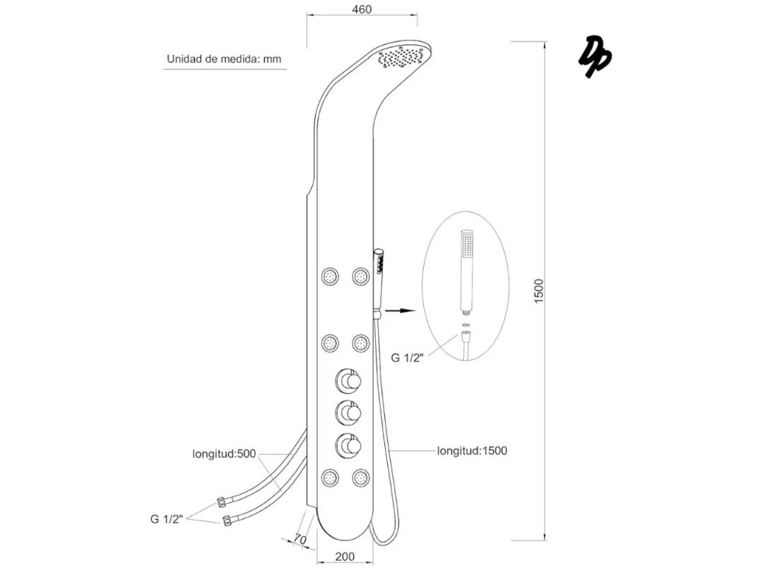 DP Grifería Dominicana- Columna de hidromasaje termostática en aluminio blanco