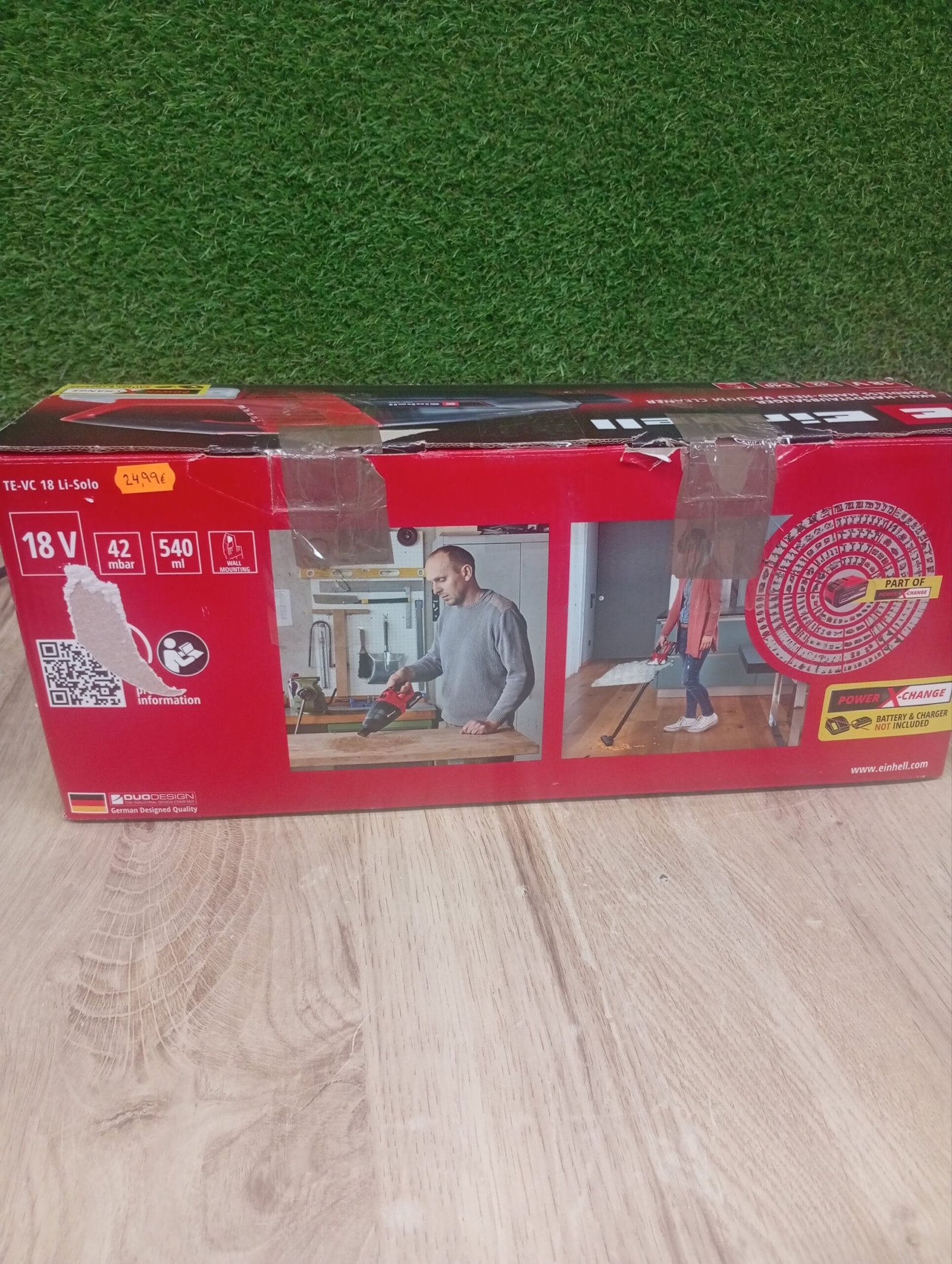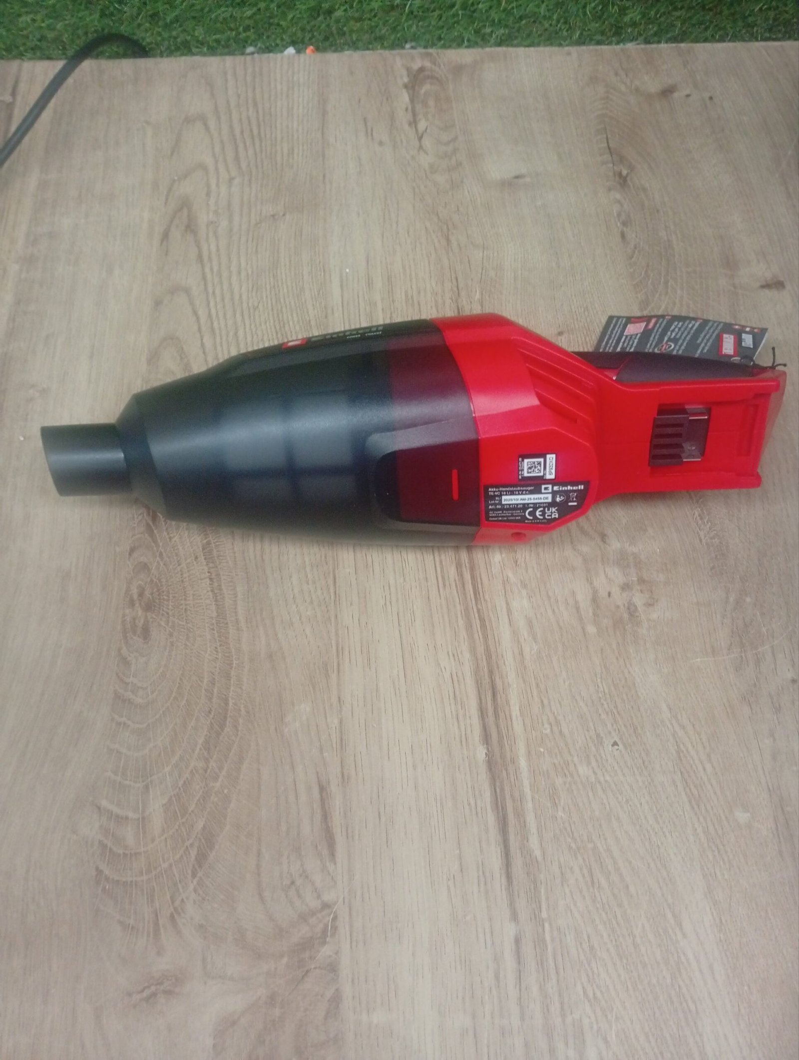 Einhell Aspiradora Manual sin Cable, Iones de Litio, contenedor de Polvo de 540 ml, Incluye 3 boquillas, extensión, Soporte de Pared, Color Rojo, Sin Batería