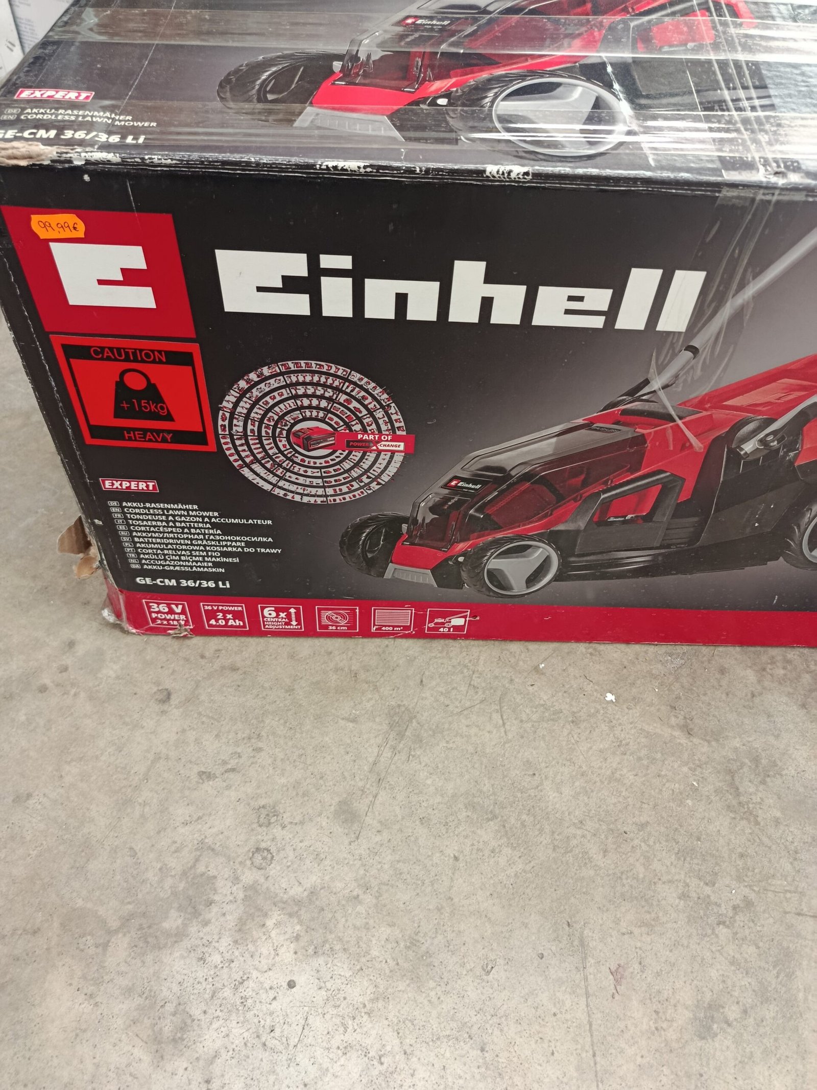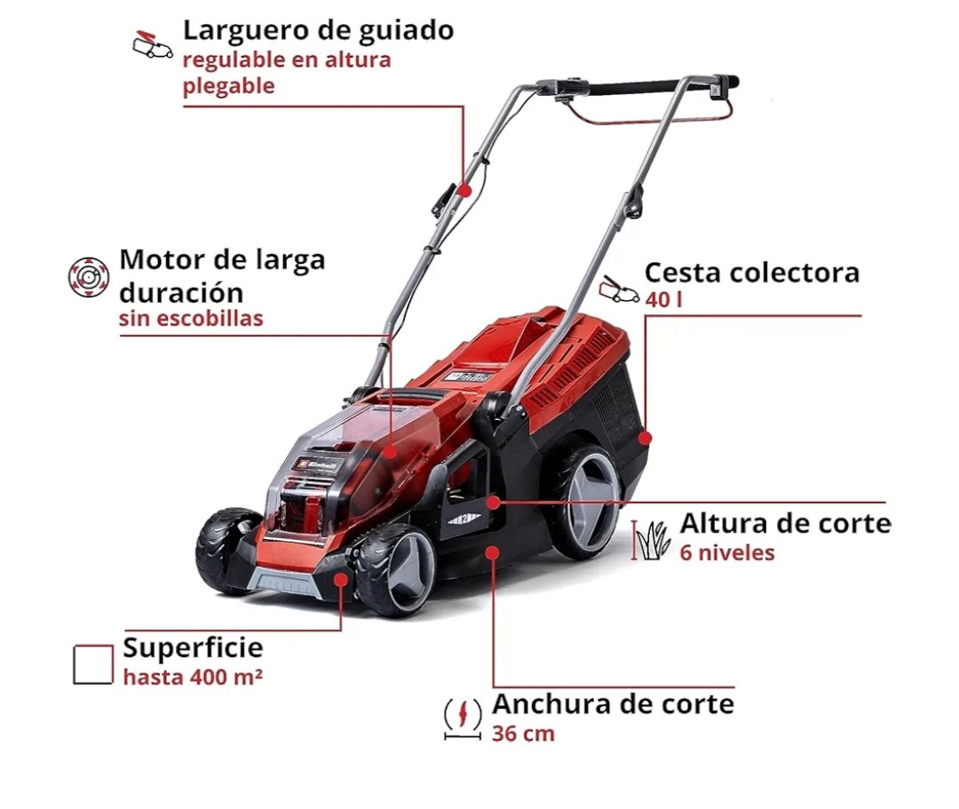 Einhell Cortacésped a batería GE-CM 36/36 Li Kit Power X-Change (36V, 36cm ancho de corte, hasta 400 m², Brushless, 40L bolsa recolectora, 25-75 mm altura de corte, con 2×4,0 Ah batería y 2x cargador)