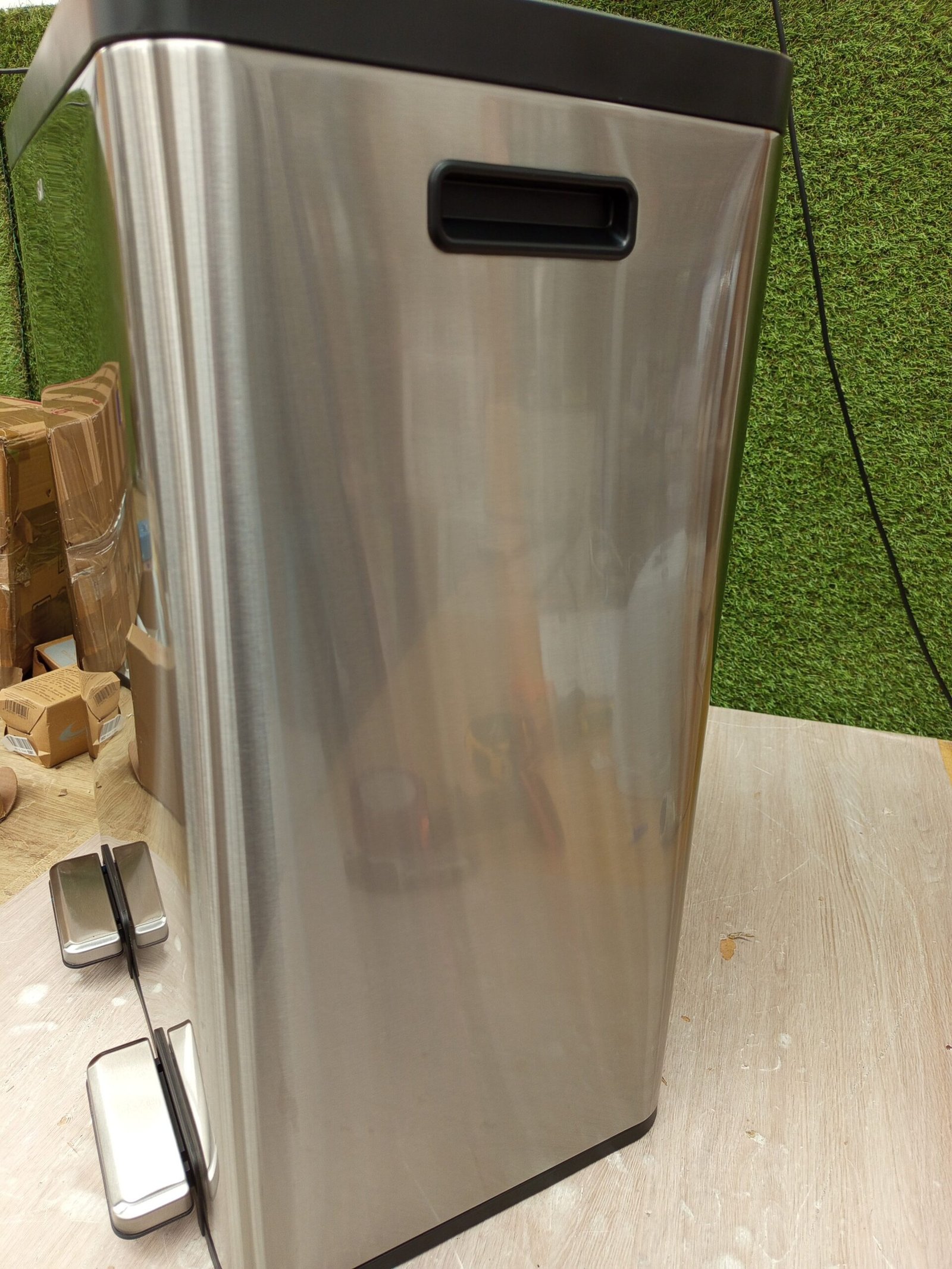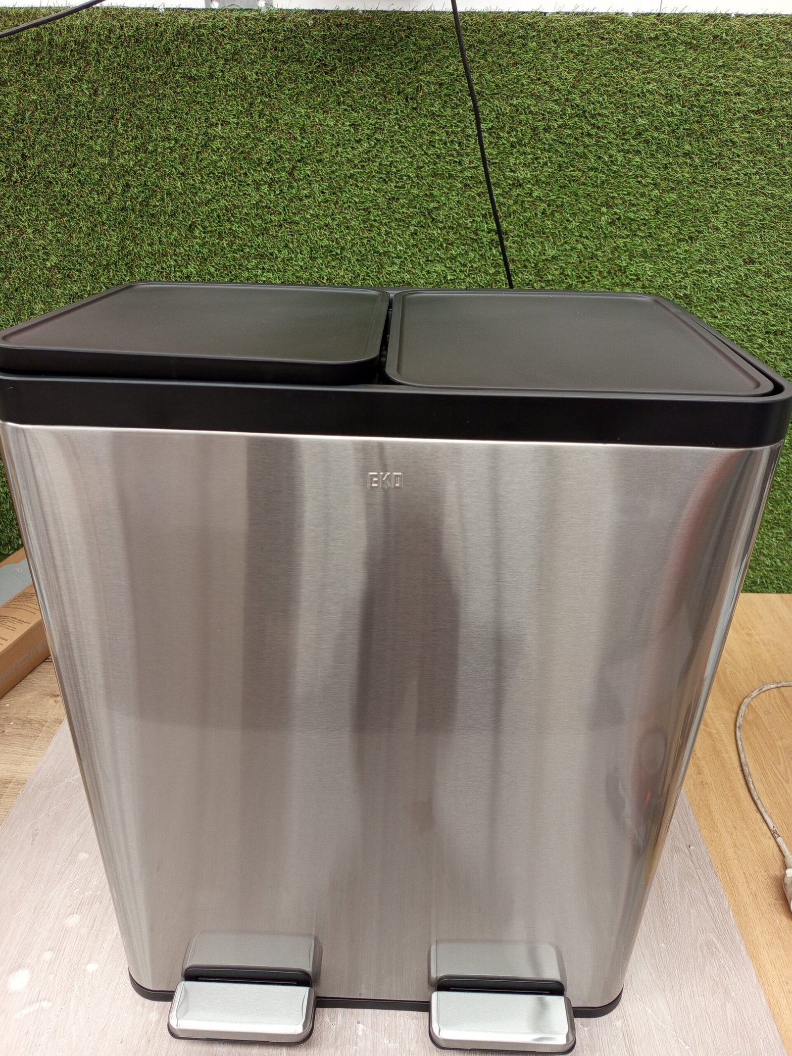 EKO Cubo de Basura Cocina Reciclaje 30L+30L con Doble Pedal | Papelera Acero Inoxidable Antihuella con Tapa de Resina Elegante | Cubos Separados para Reciclaje y Basura | Diseño Compacto