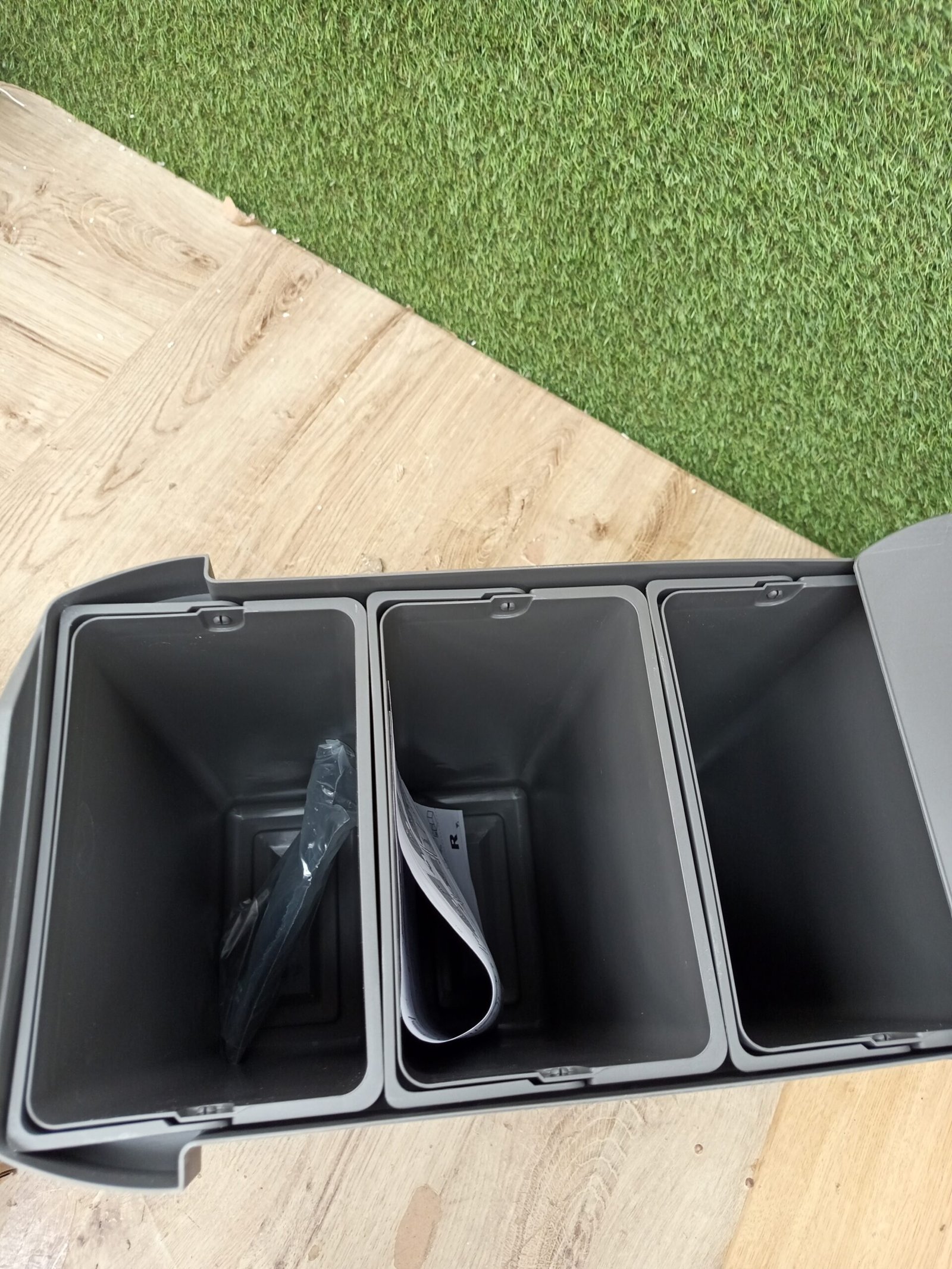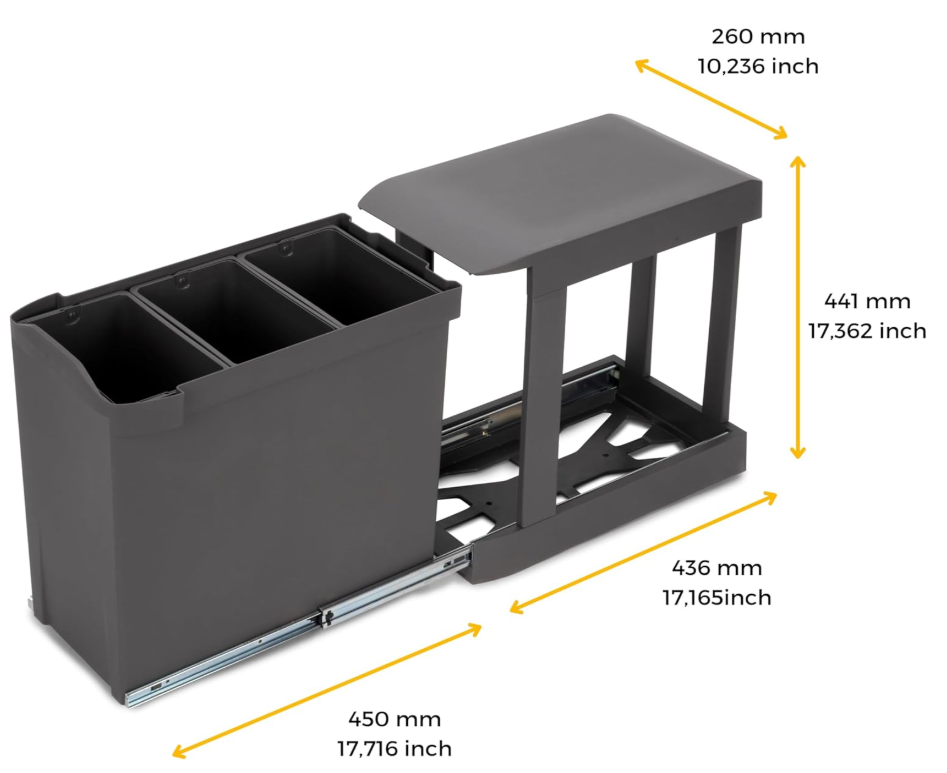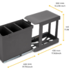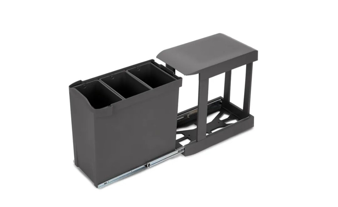 Emuca Contenedores de reciclaje para cocina, Cubos de basura bajo fregadero, 3x10L, fijación inferior y extracción automática, Acero y Plástico, Gris antracita