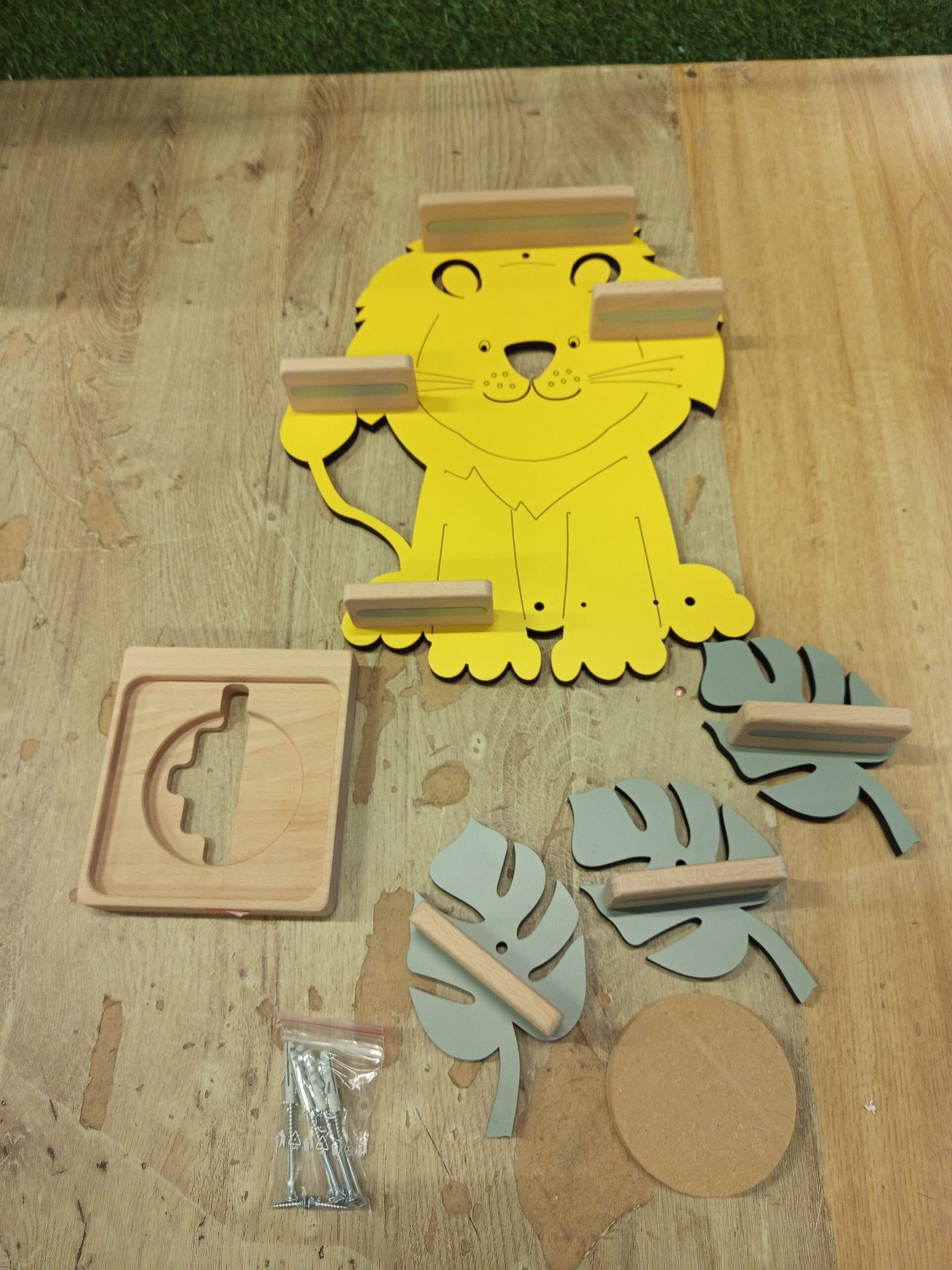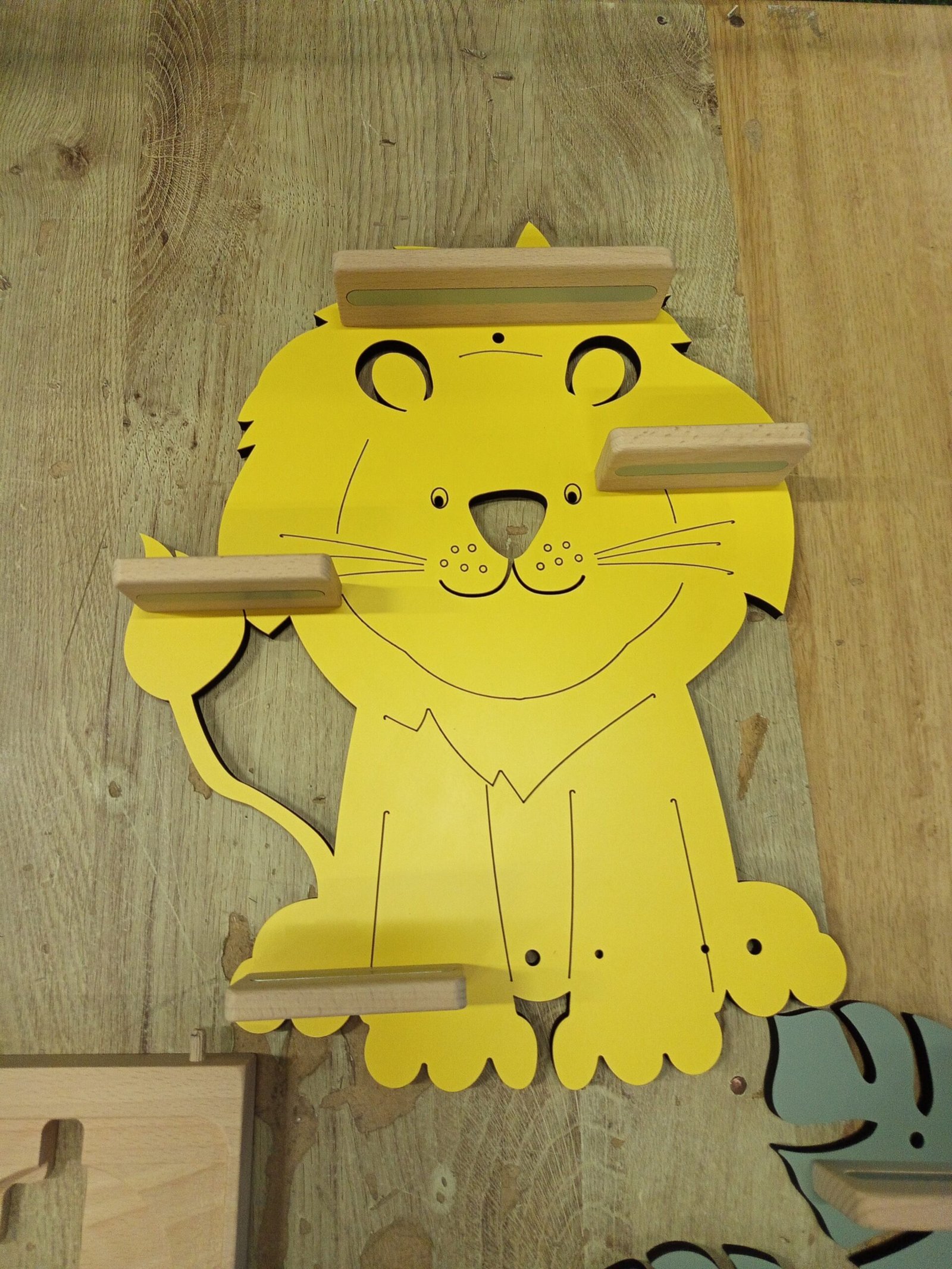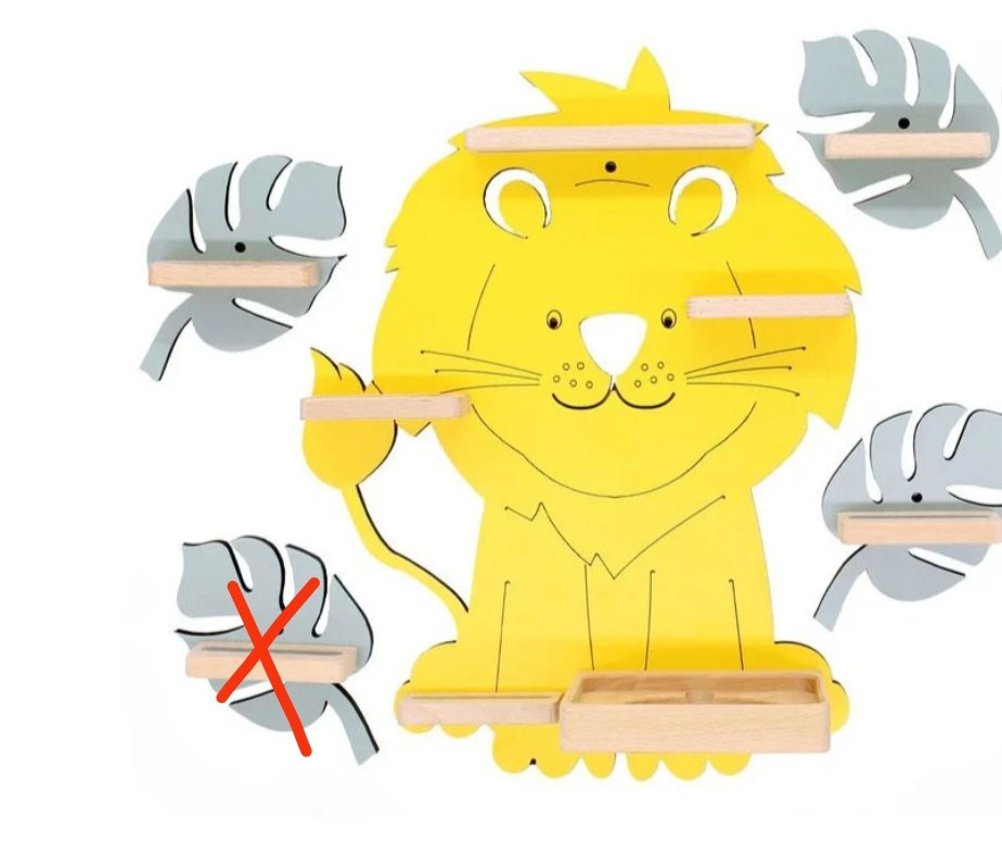 El diseñador creó este estante de pared para todos los amantes de los animales. Un león recorre la habitación infantil, deleitando no solo a los niños.