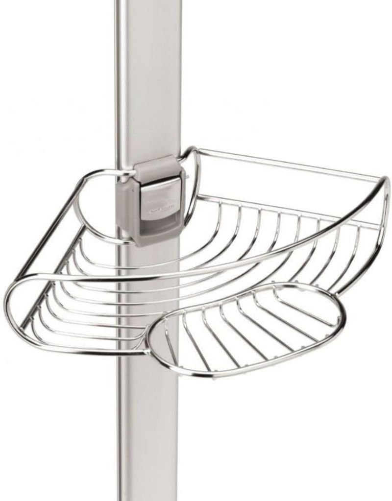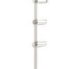 Estante de ducha de metal, ideal para organizar tus artículos de baño. Es de color gris plata y tiene tres niveles