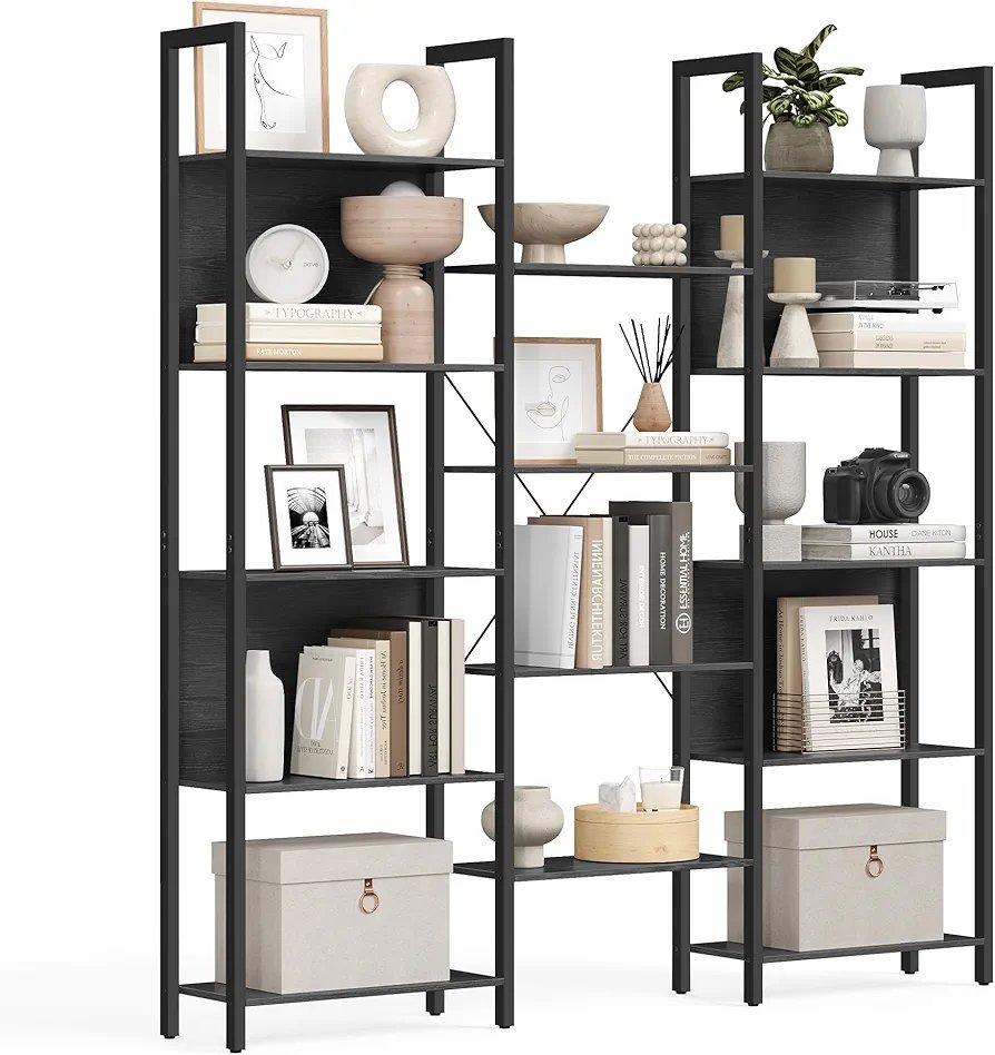 VASAGLE Librería, Estantería de Almacenamiento, con 14 Estantes, Marco de Metal, para Sala de Estar, Estudio, Oficina, Estilo Industrial, 24 x 158 x 166 cm, Negro Ébano y Negro Tinta LLS107B56