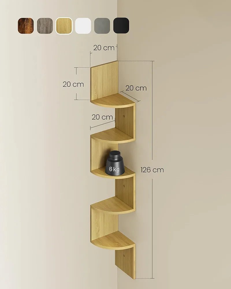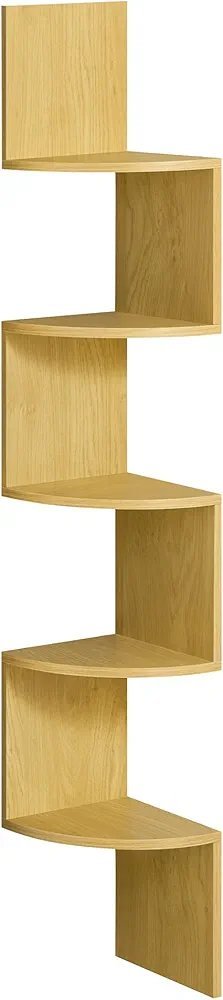 VASAGLE EstanterÍa de Esquina en Pared, EstanterÍa Esquinera de 5 Niveles, 126 x 20cm, Estanteria Libros, para Dormitorio, Sala de Estar, BaÑo, Oficina en Casa, Roble Natural LBC072Y70
