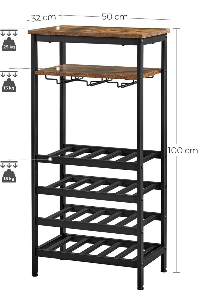 VASAGLE – Estantería para Vino, 20 Botellas, Soporte para Botellas, Expositor de Vino, con portavasos, para Bodega, Cocina, Comedor, Estilo Industrial, 50 x 32 x 100 cm, Color marrón rústico y Negro