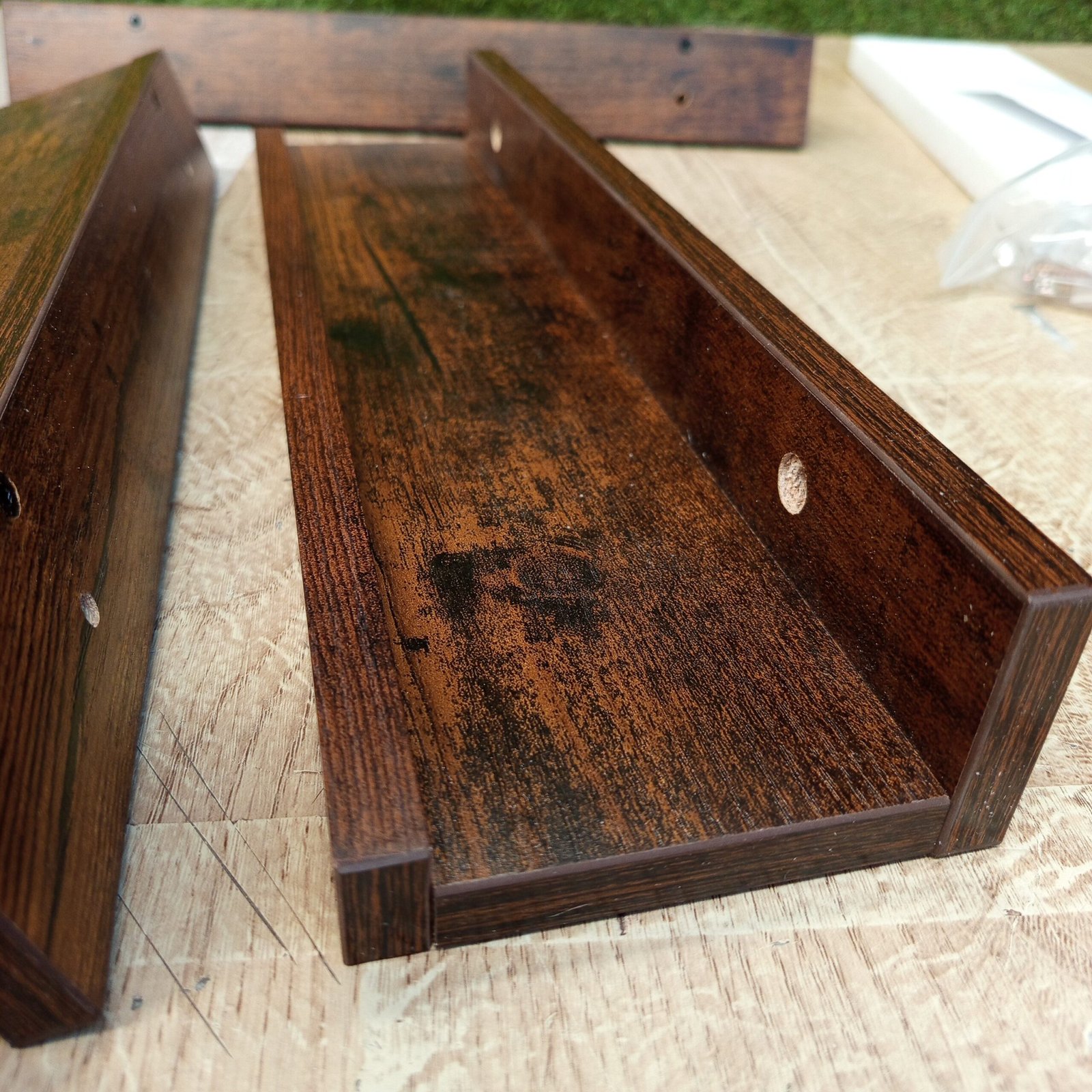 Hechos de aglomerado de calidad y fijadas a la pared con tornillos, estos 3 estantes son resistentes, y cada una de ellos soporta hasta 10 kg. Su superficie resistente al agua es fácil de limpiar y duradera