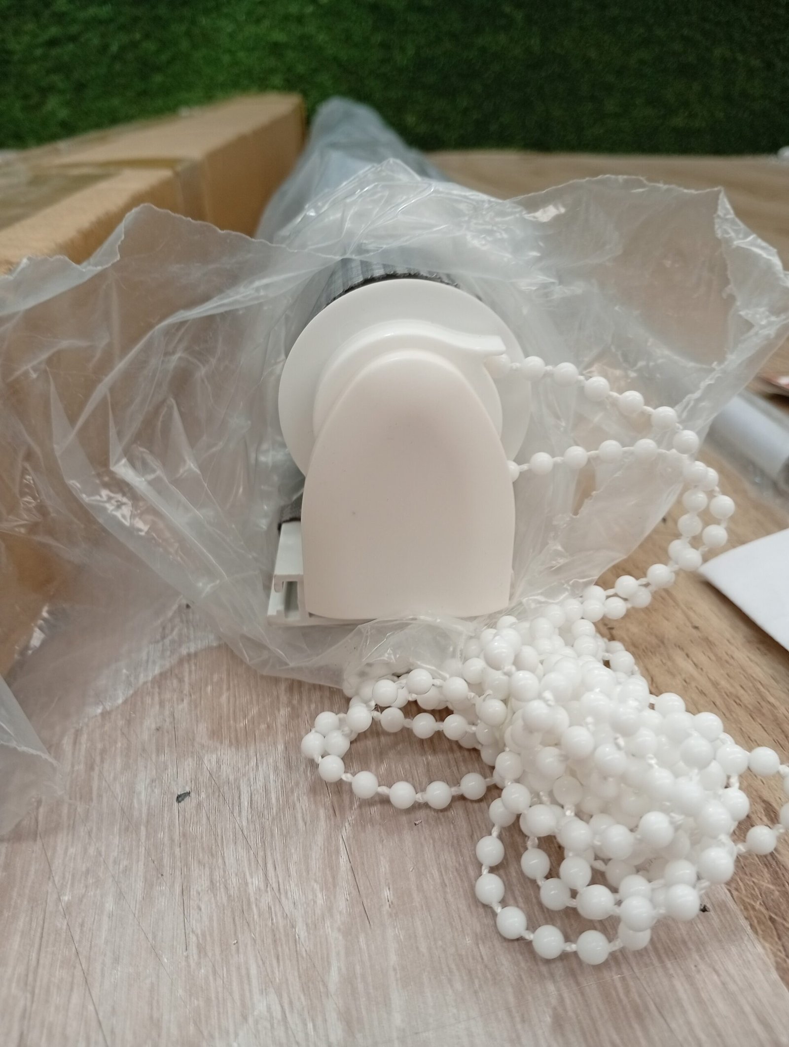 Mecanismo, soportes y cadena de PVC en color blanco.