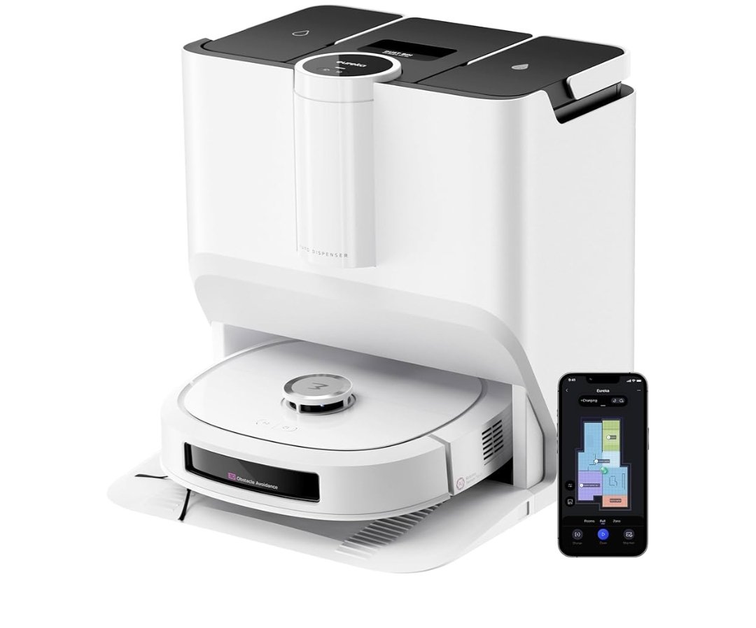 EUREKA J20 Robot Aspirador y Fregasuelos, Succión de 8000Pa, Diseño de Mopa con Secado Automático, Evitación de Obstáculos, Detección de Alfombras, Estación Base Autolimpiable, Control por Voz