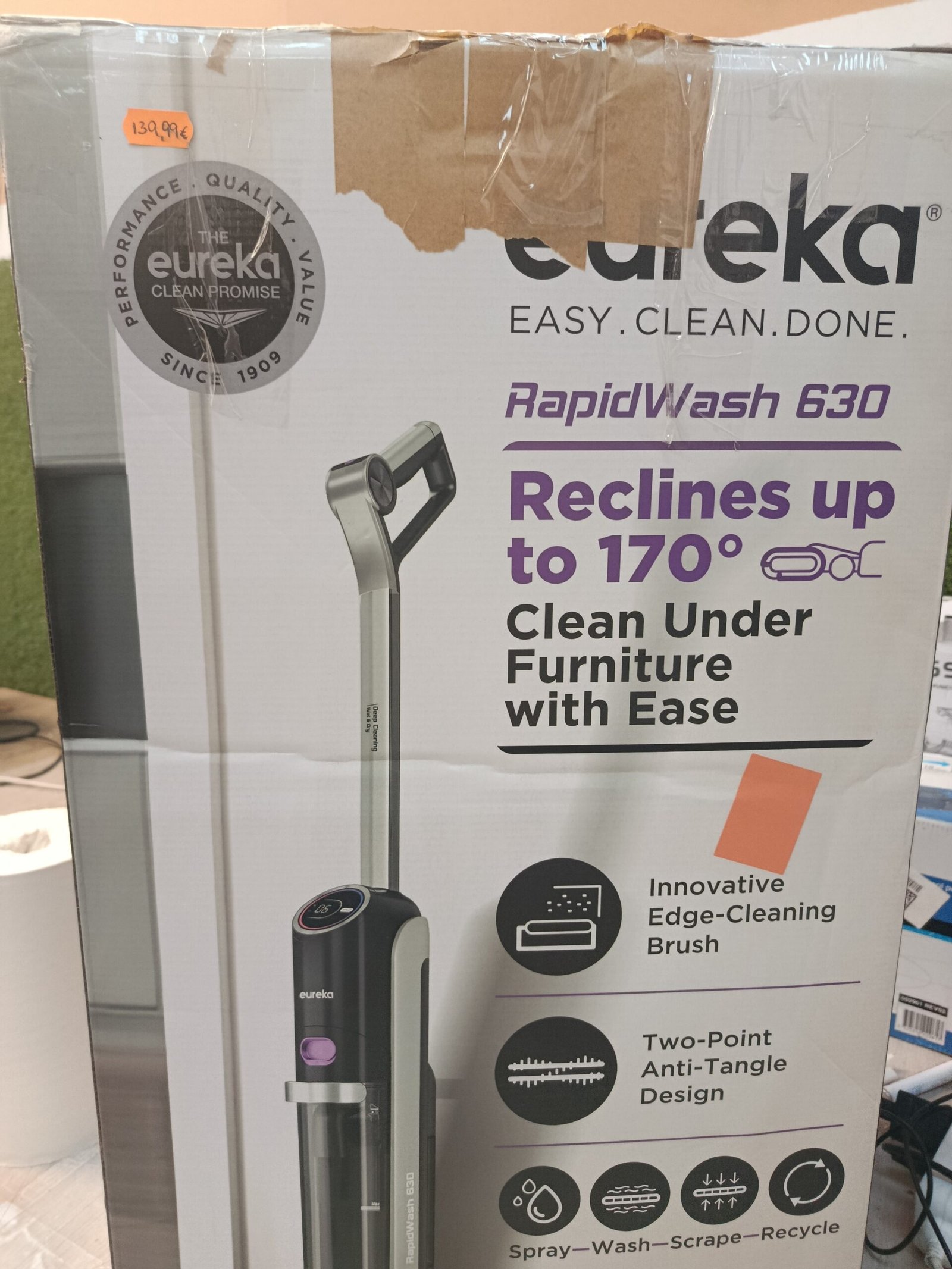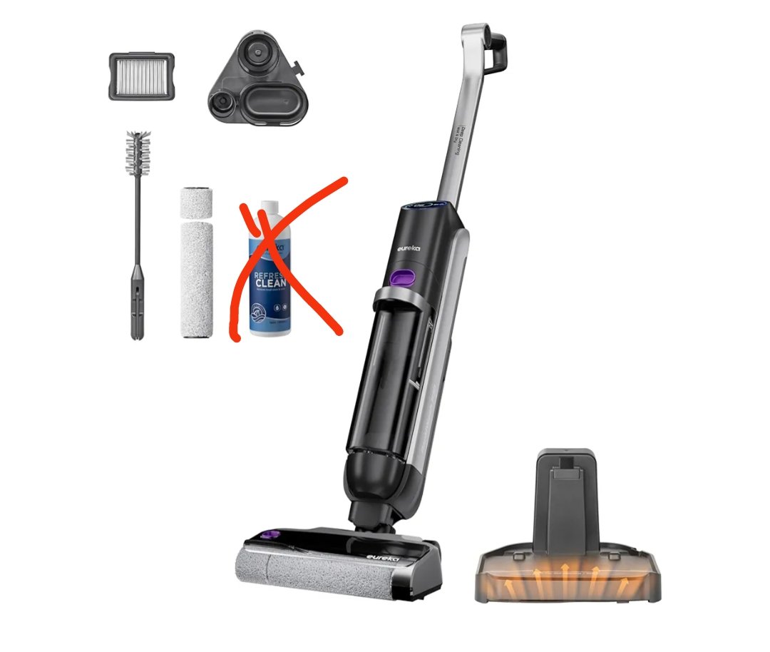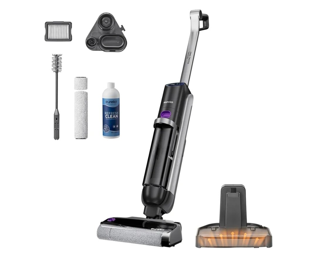 Eureka RapidWash NEW630 Aspiradora Fregadora Sin Cable en Seco y Húmedo,Posición Plana de 170°,Secado por Aire Caliente a 60°C,21600 Pa,38 Min,Autolimpieza y Función Antienredos,Depósito Doble,LED
