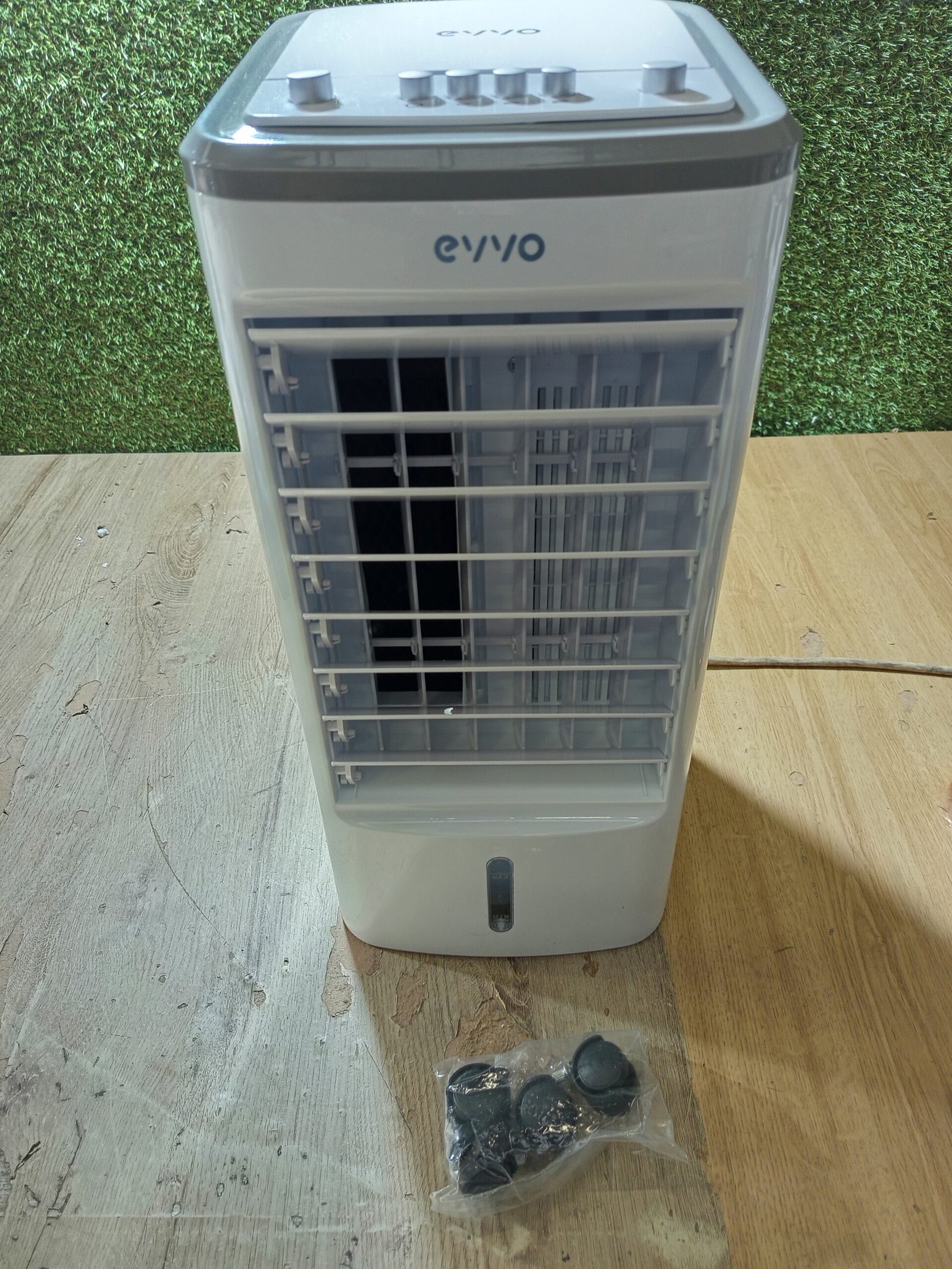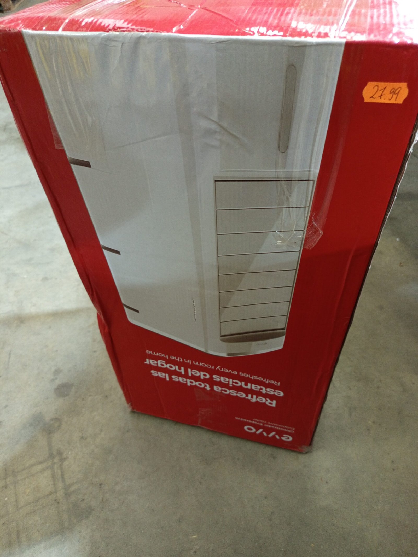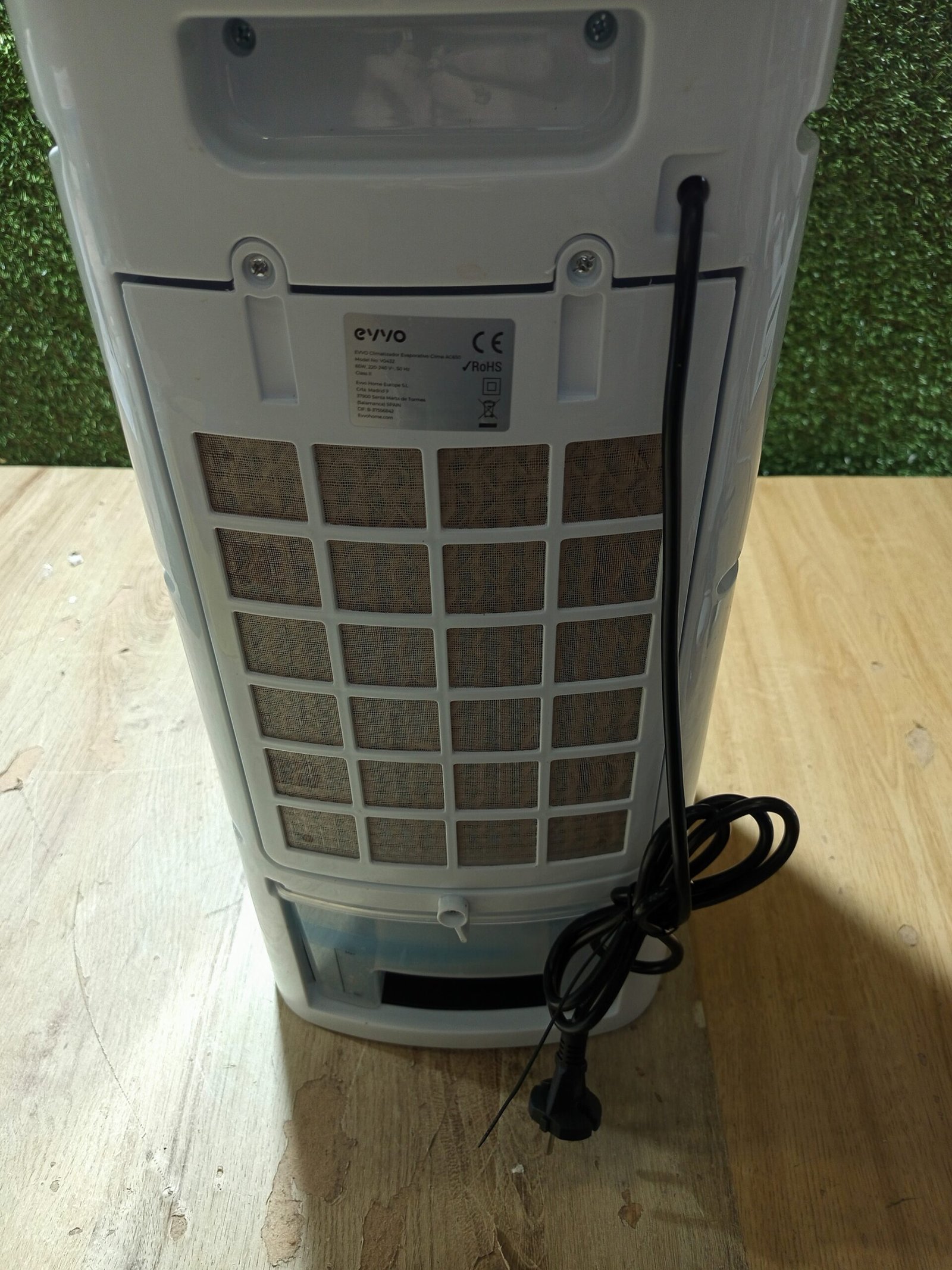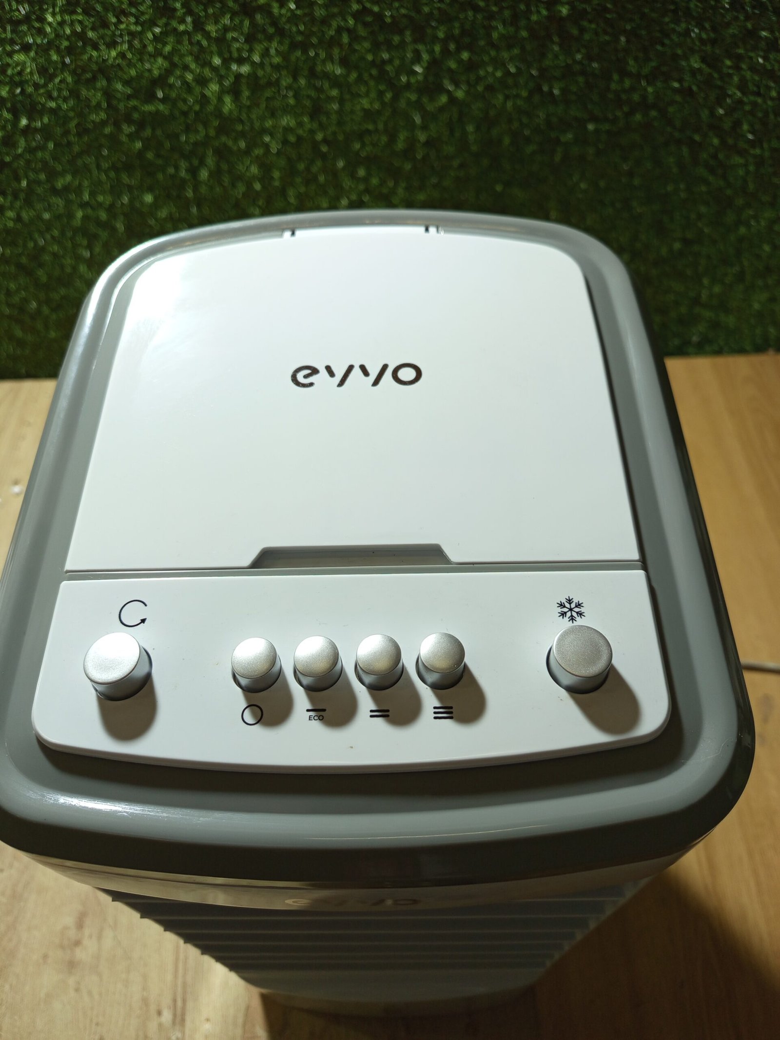 EVVO Climatizador Evaporativo CLIMA AC650. Potencia: 65 W, Depósito: 3,5 L, 3 velocidades ajustables, Oscilación automática de 70º, Ruedas multidireccionales, Incluye 2 acumuladores de frío