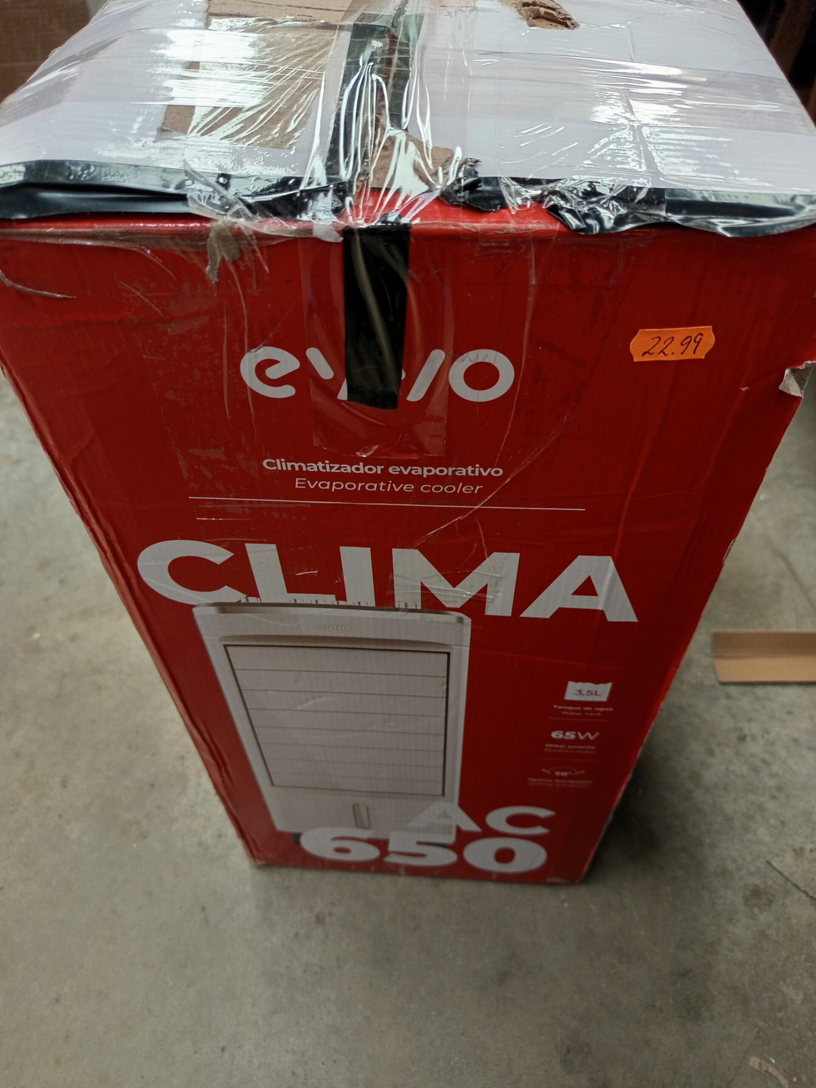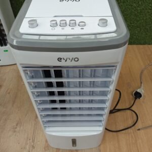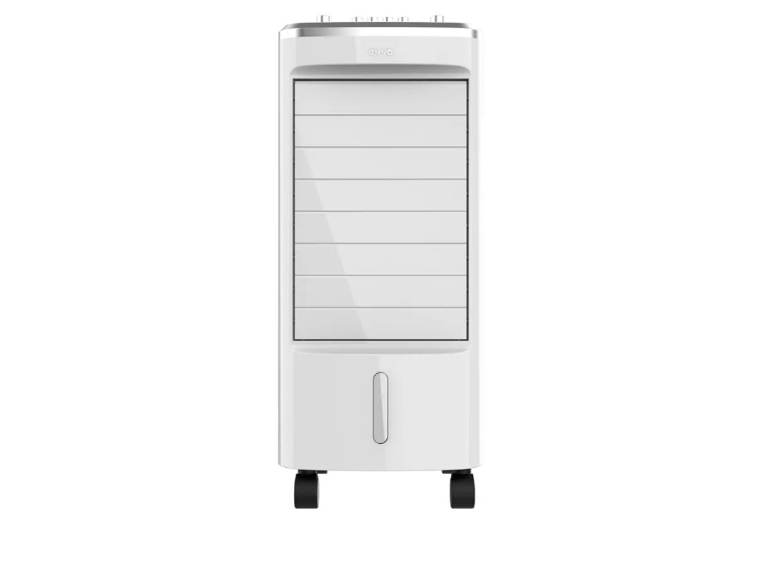EVVO Climatizador Evaporativo CLIMA AC650. Potencia: 65 W, Depósito: 3,5 L, 3 velocidades ajustables, Oscilación automática de 70º, Ruedas multidireccionales, Incluye 2 acumuladores de frío