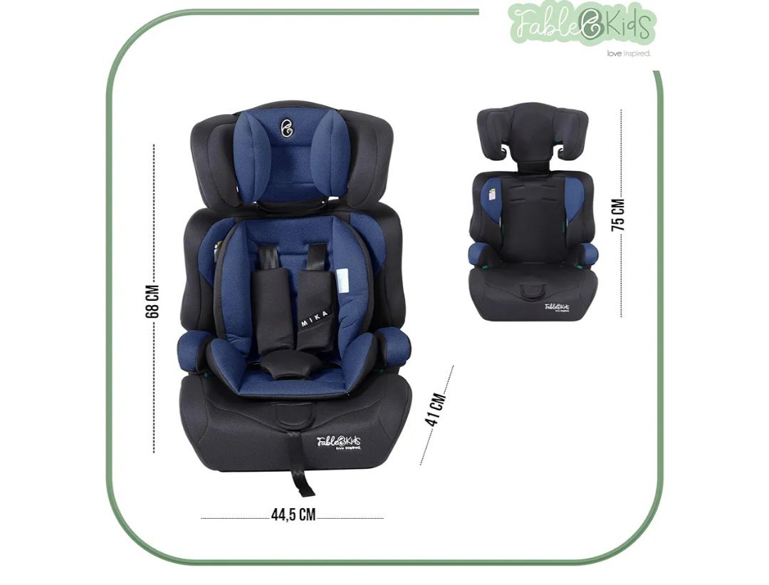 Asiento infantil para coche | Cinturón de seguridad de 3 puntos | Asiento infantil a partir de 15 m | Asiento de coche para niños 76-150 cm | Asiento infantil reposacabezas ajustable | ECE El asiento infantil de Fable Kids es adecuado para niños con una talla de 76 – 150 cm y a partir de los 15 meses. Se coloca en la dirección de la marcha y cumple con la norma europea de seguridad ECE R129/03.El asiento infantil Fablekids no es un problema para coches pequeños. Con su tamaño compacto de altura: 68-75 cm, ancho: 44,5 cm, profundidad: 41 cm, este asiento infantil cabe en cualquier coche y le pide a su hijo un placer de conducción ideal y seguro gracias a su suave acolchado, así como su ergonomía bien pensada.