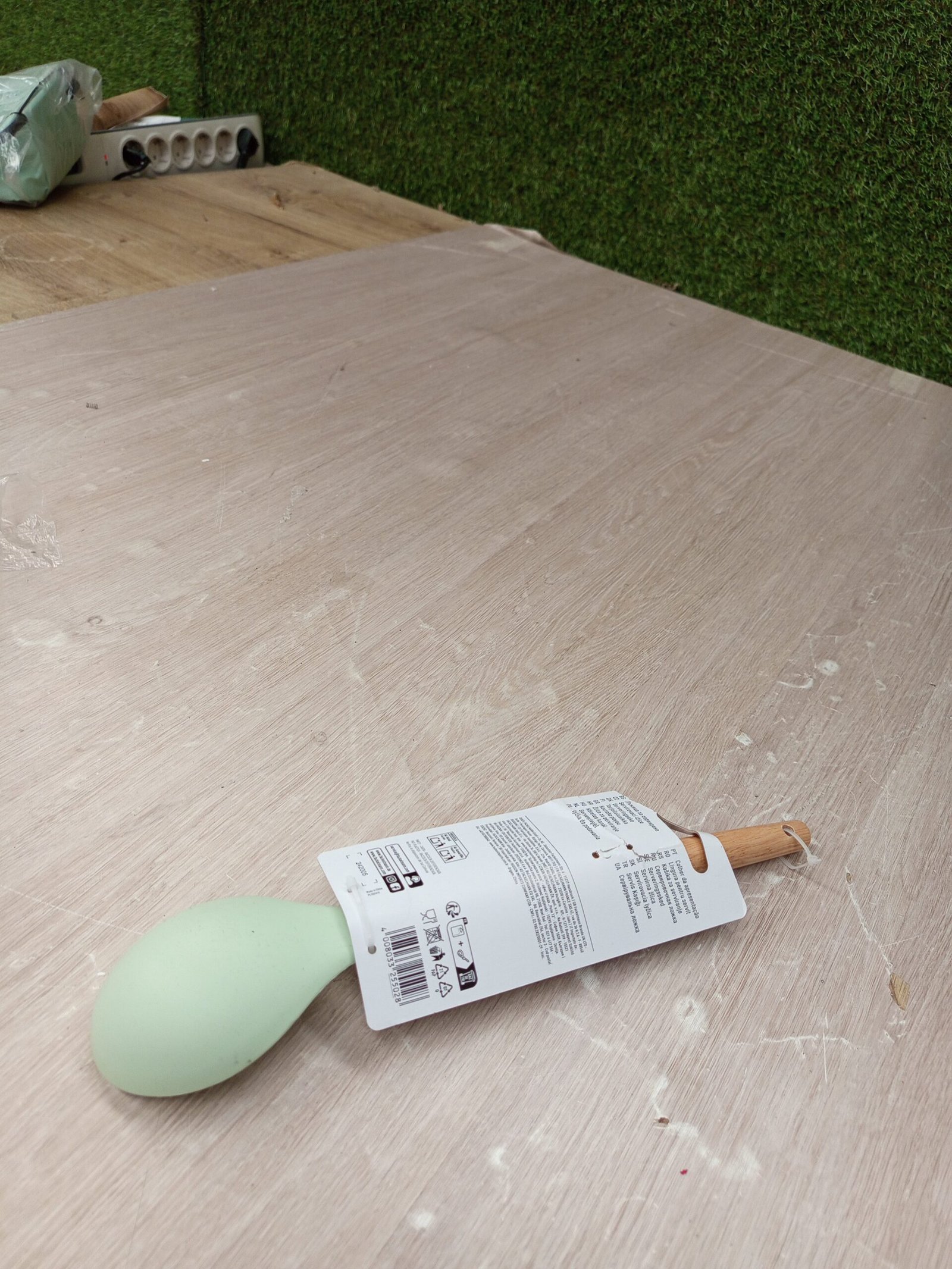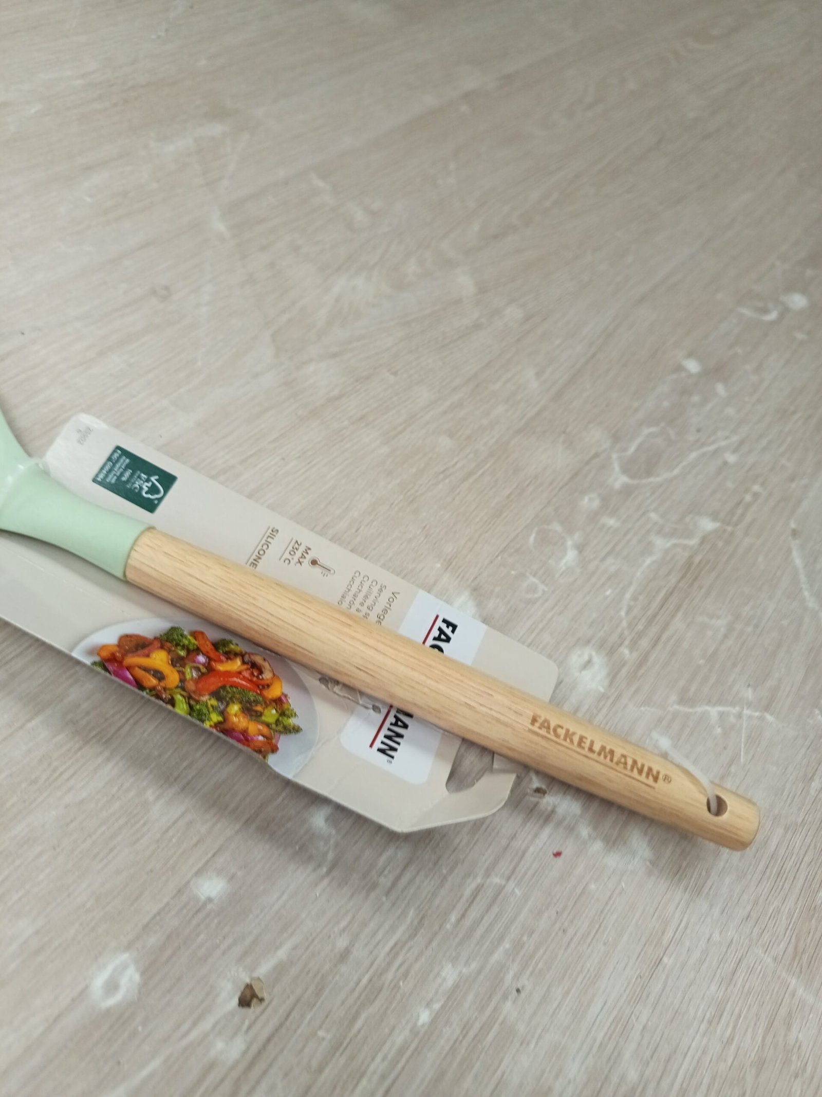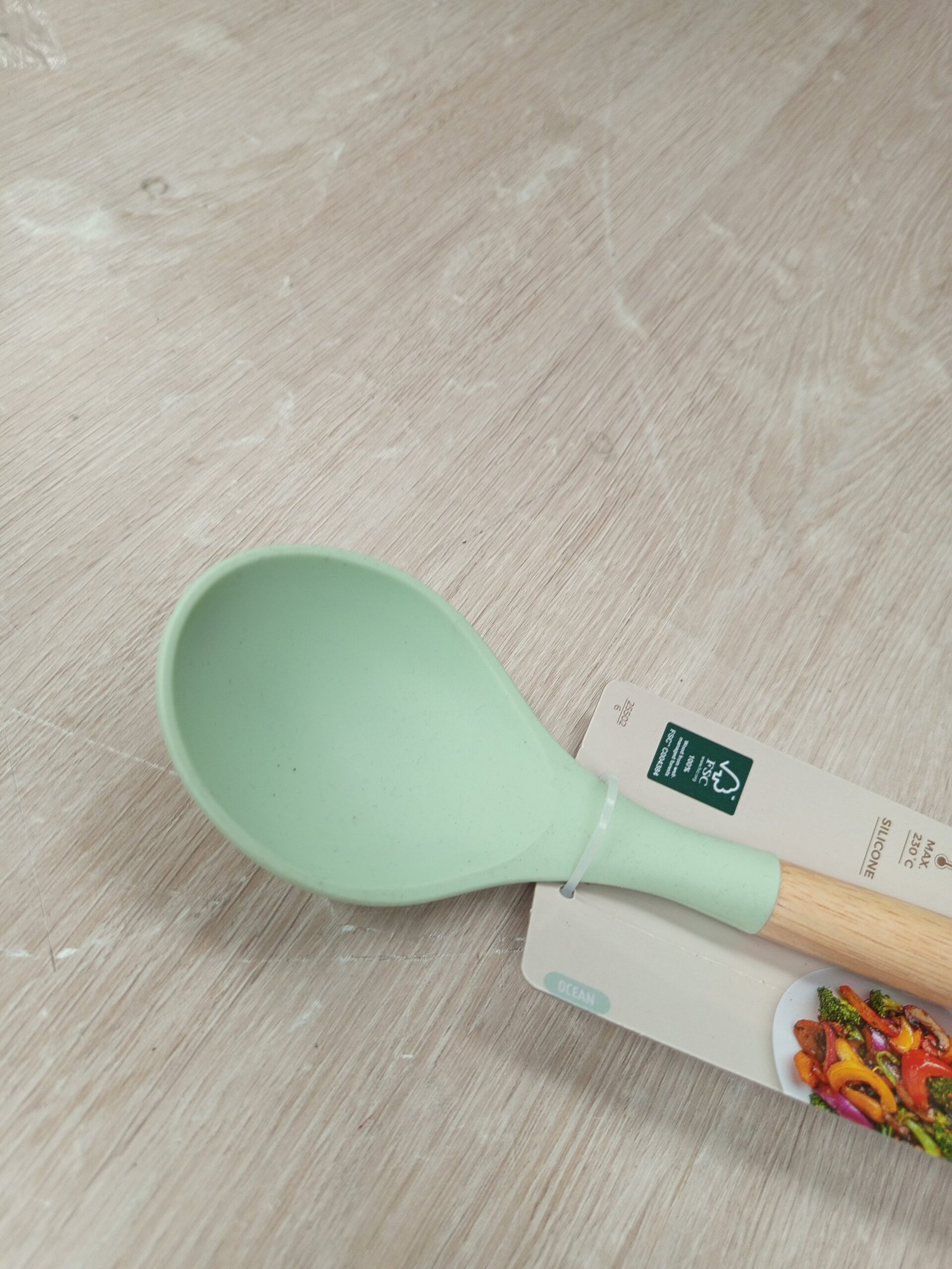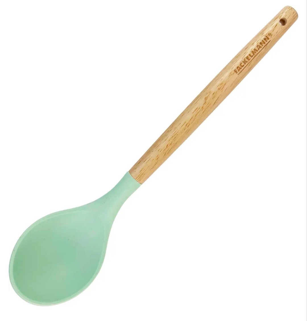 Fackelmann Ocean Cuchara para Servir, Cucharón de Silicona con Núcleo Rígido de Acero y Mango de Madera Antideslizante, Apta para Lavavajillas, 31 x 7 cm, Verde Agua 1 ud