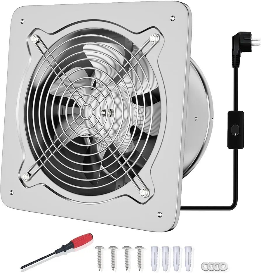 FanGoFast Extractor de Aire 200mm Ventilador de Baño 980m³/h Silencioso con Aleta de Retorno Potente Ventilador Metálico de Pared con Enchufe EU para Cocina Garaje Sótano (Plata, 200mm)