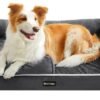 Feandrea Cama Ortopédica para Perros, Sofá, Cama para Mascotas, Acolchado Suave, Bordes Elevados, Funda Extraíble y Lavable, 91 x 68 x 18 cm, Antideslizante, Gris Oscuro PGW076G01
