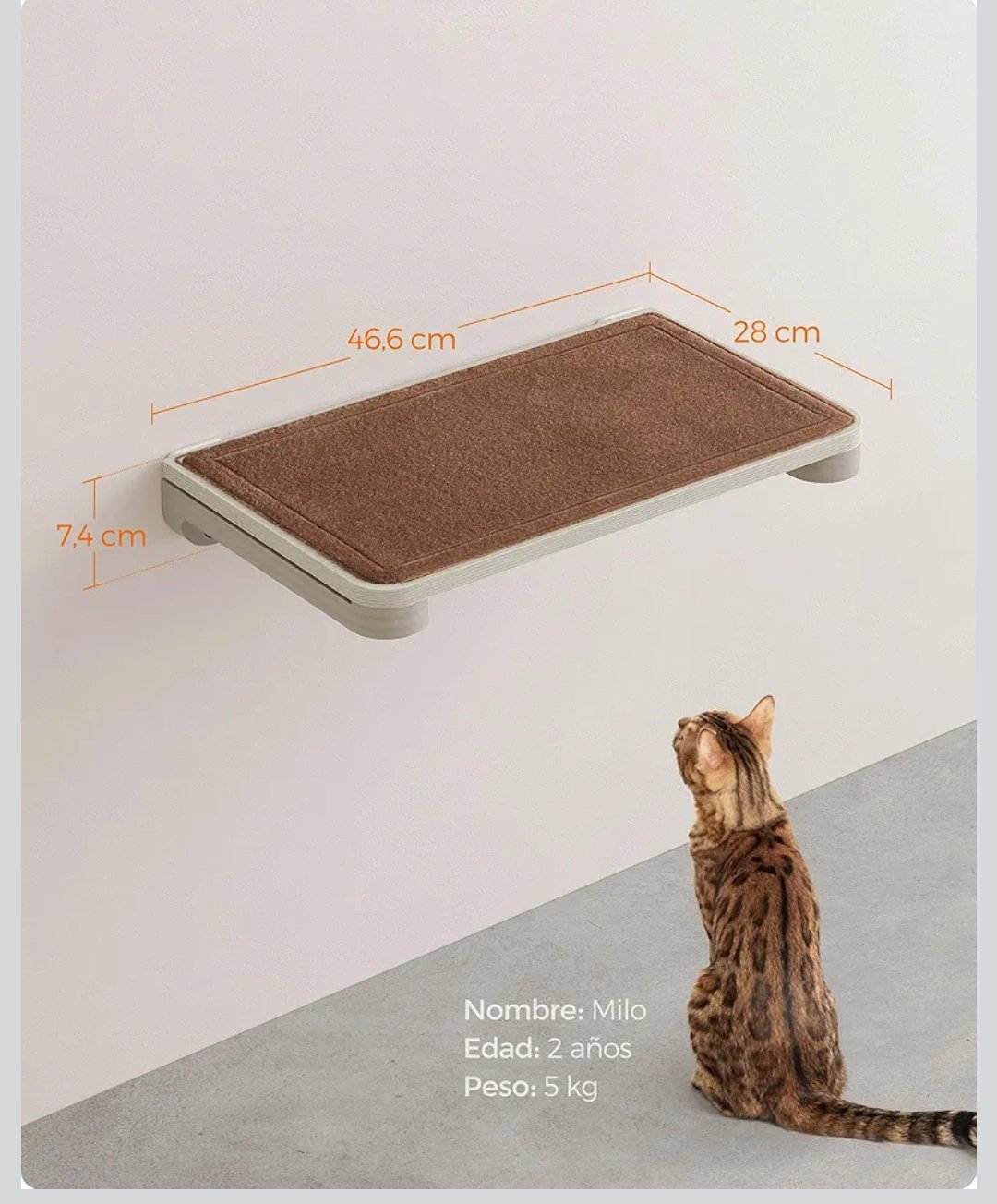 Feandrea Colección Clickat – N.007 Plataforma de Pared para Gatos, Montaje Super Rápido, Ampliación Ilimitada, Módulo Reemplazable y Almohadilla de Fieltro, Estante Mural para Gatos de Interior