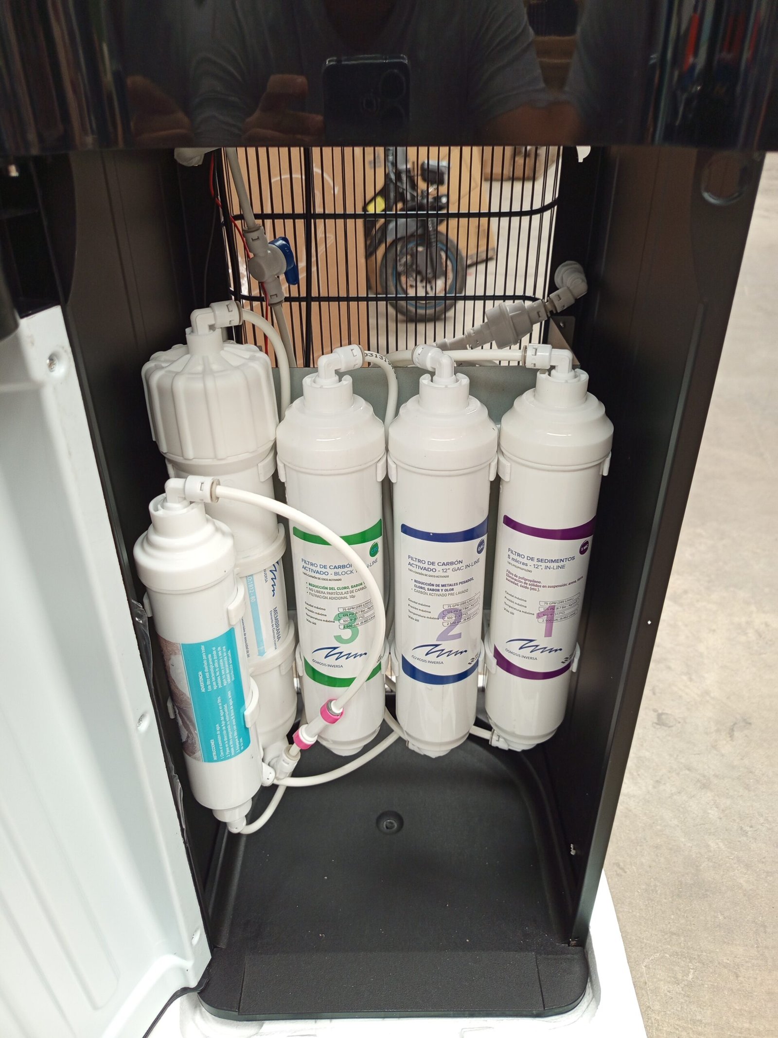 Fuente de Agua de ósmosis inversa de 5 etapas: Modelo Eco-Standard Black Cooler RO 2T. Filtro en línea estándar. Salida de Agua fría y Natural o fría y Caliente. Bbagua.