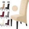 Fundas para sillas XL 4 Piezas Fundas de Sillas de Comedor Spandex Elástico Jacquard Cubiertas de Silla Funda de Silla elástica Fundas Sillas para Decoración de Fiesta (Beige, Paquete de 4)-XL