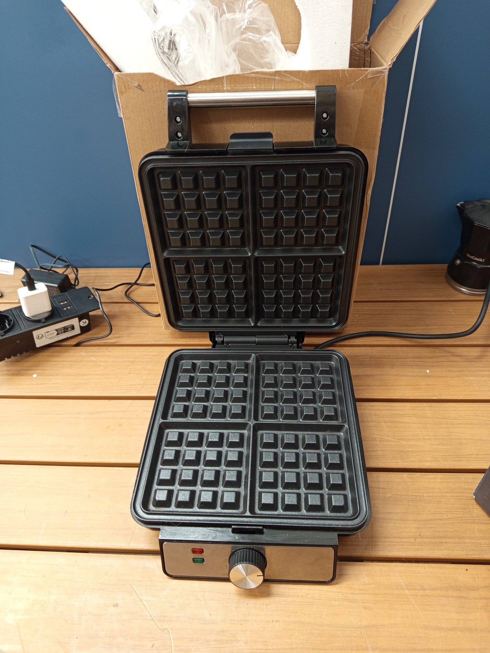 Superficie de calentamiento XXL de 23,5 x 23,5 cm: hornea hasta 4 gofres cuadrados grandes en una sola tanda.