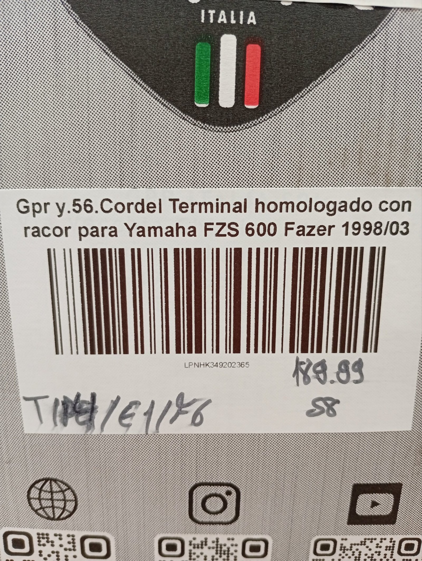 Gpr y.56.Cordel Terminal homologado con racor para Yamaha FZS 600 Fazer 1998/03, Furore negro