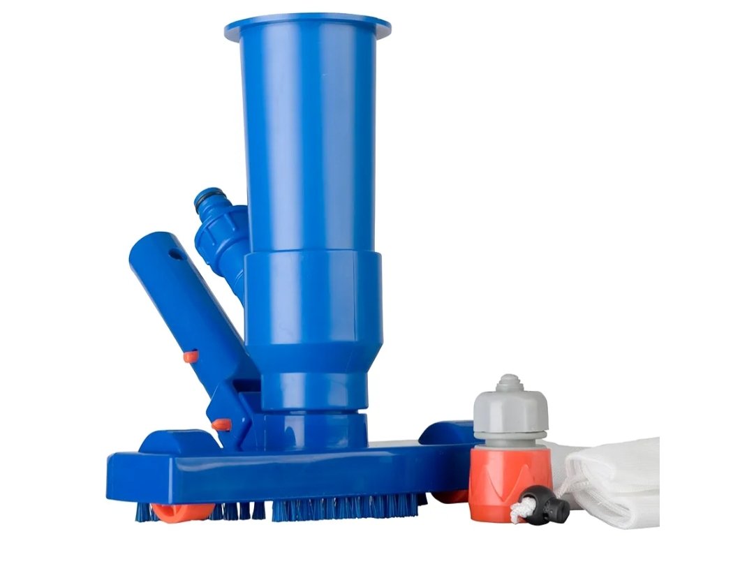 Limpiafondos manual para piscinas desmontables y spas. No incluye manguera pero es necesaria para su uso y para alcanzar todos los rincones del suelo de la piscina para una limpieza guiada y completa.