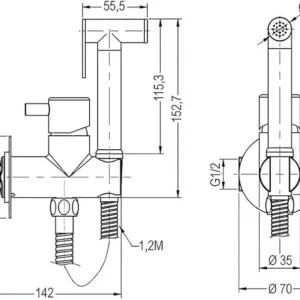Kibath L473551 Grifo para el WC, higiene íntima para sustitución del Bidet, Monomando Agua fría y Caliente con Ducha de Mano. Diseño Redondo, Cromo Brillo
